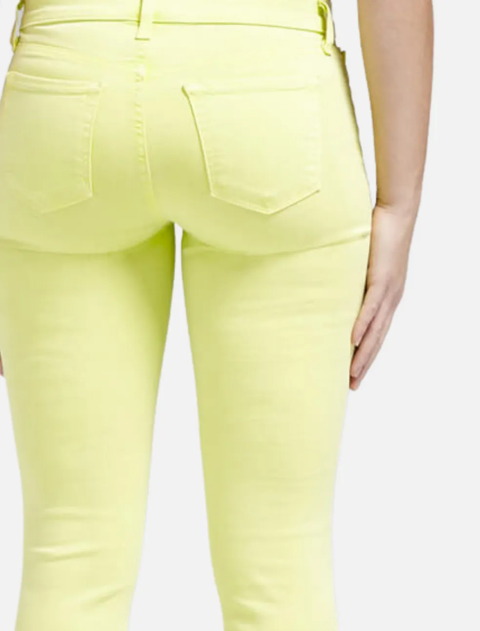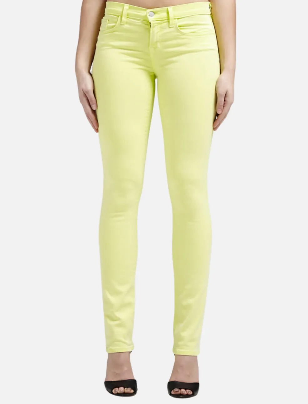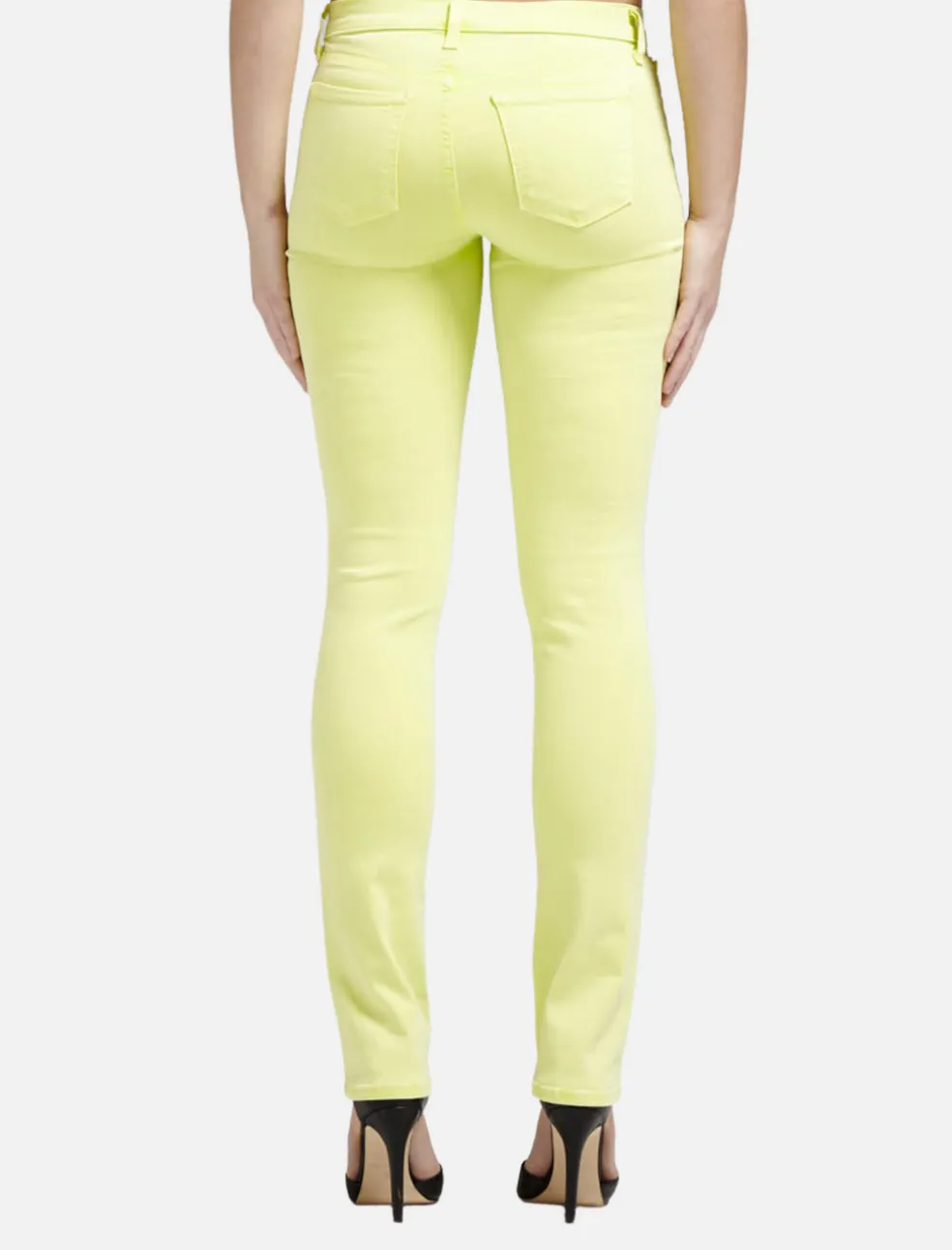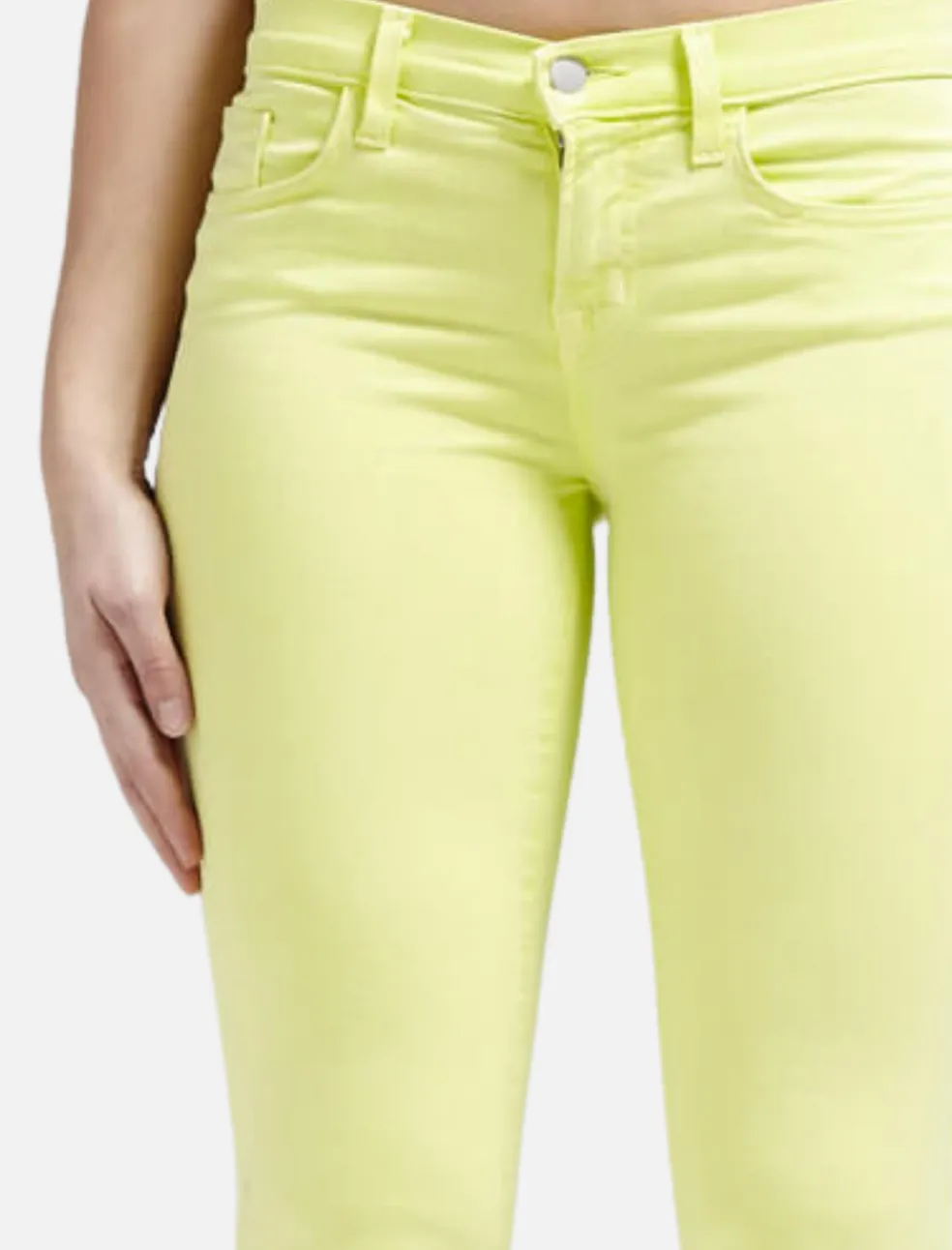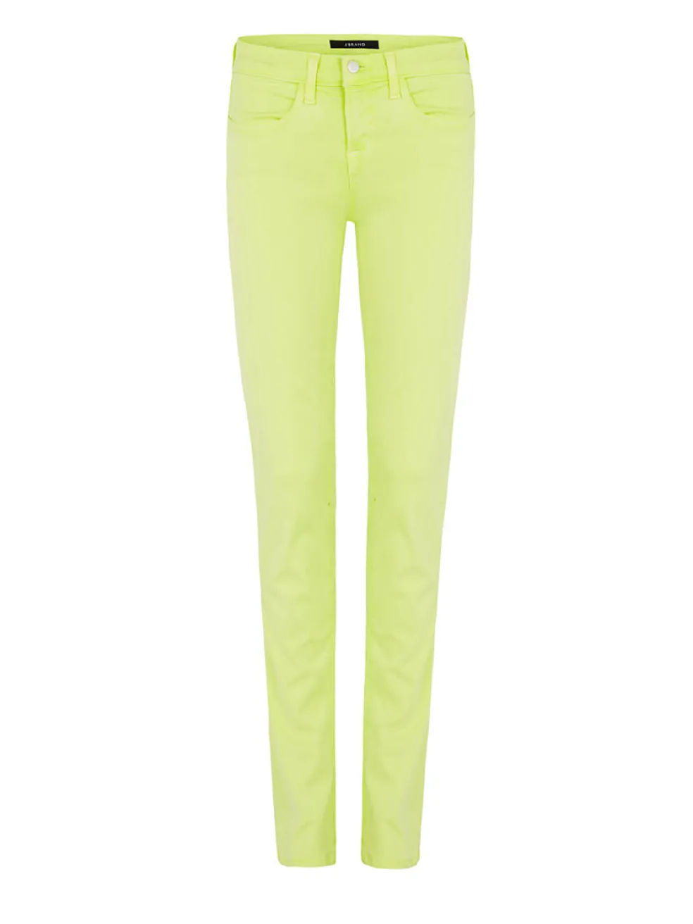 Escape winter in these vibrant green wash jeans by J Brand. These slim leg jeans are accented by silver hardware and come with a low rise of 8 inches.