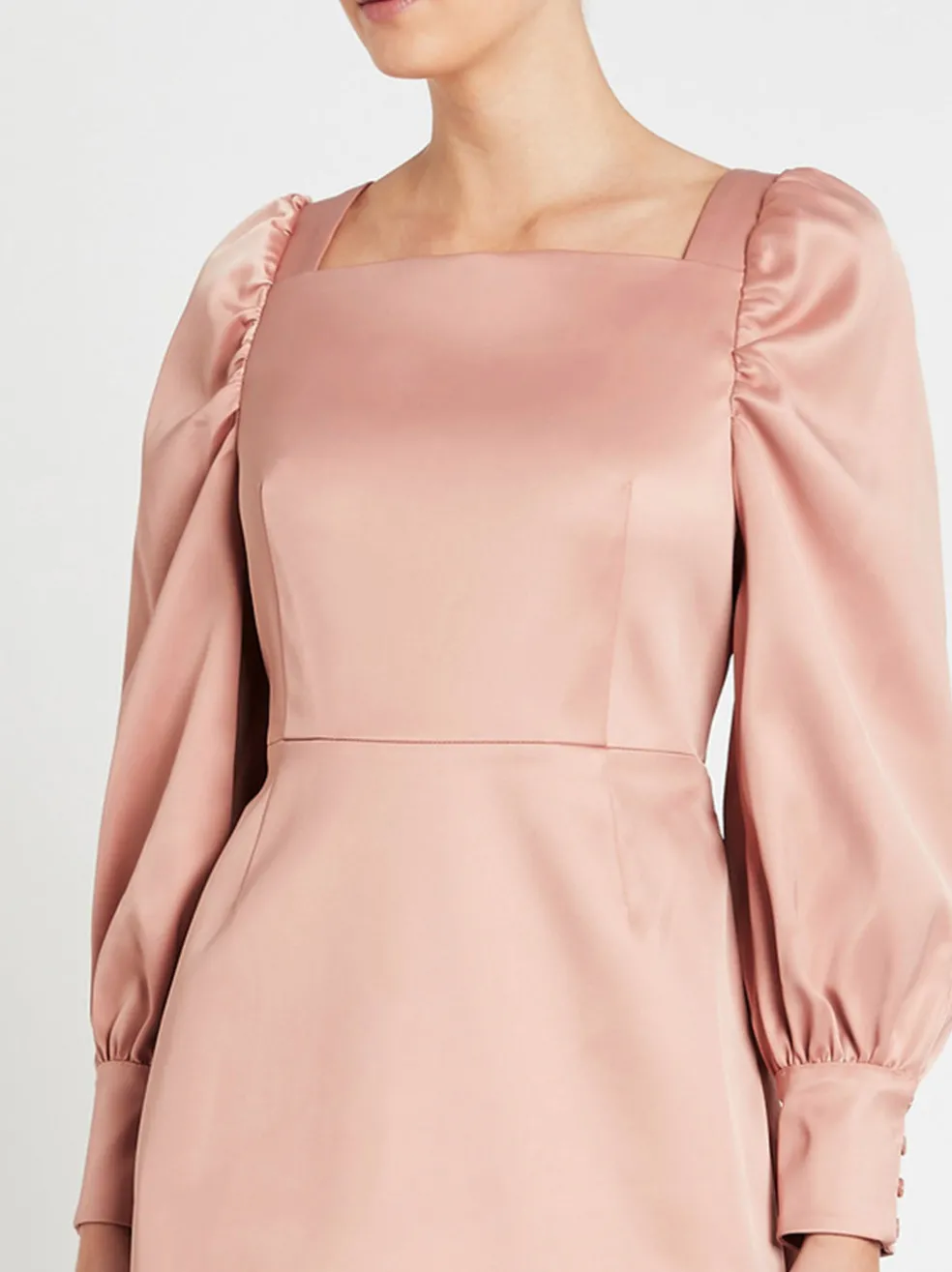 Soft and feminine the Akira Dress in Misty Rose by Baum Und Pferdgarten is perfect for those winter romance occasions. Crafted from ultra smooth polyester blend, this mini dress features a wide square neckline, romantic puffy sleeves and adorned with a 4 button cuff finish and centre front darts for a fitted waist. Pair with a block heel and statement earrings for a directional edge.