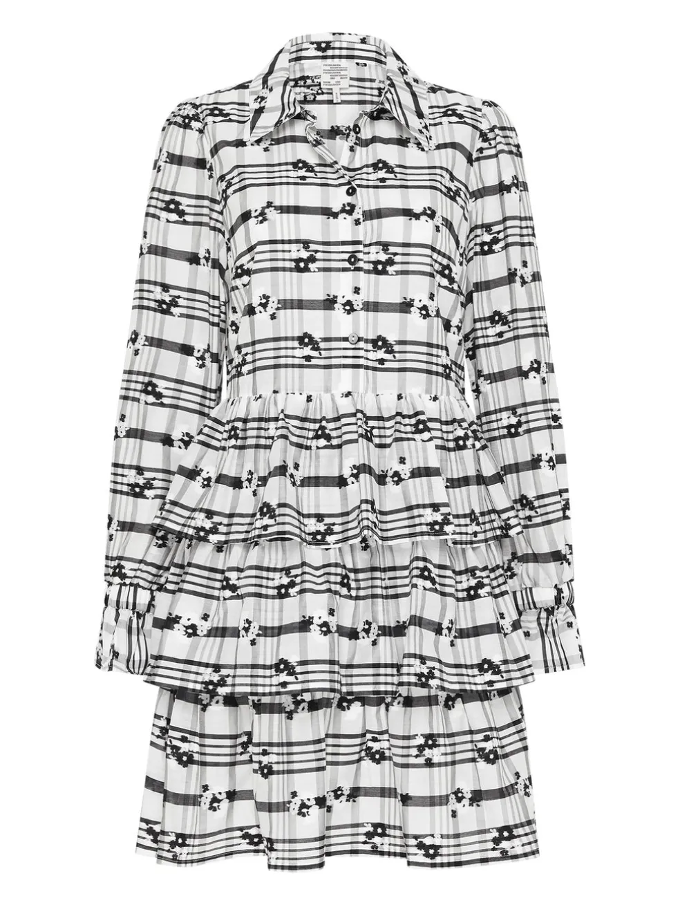 Add some flare to your wardrobe with the Anya Dress in White Black Blossom Check by Baum Und Pferdgarten. Crafted in a modern checked update this long sleeved dress features a classic collar with a centre front button down placket finished with tier layered skirt. Team with a leather jacket and boots for the ultimate off duty style.