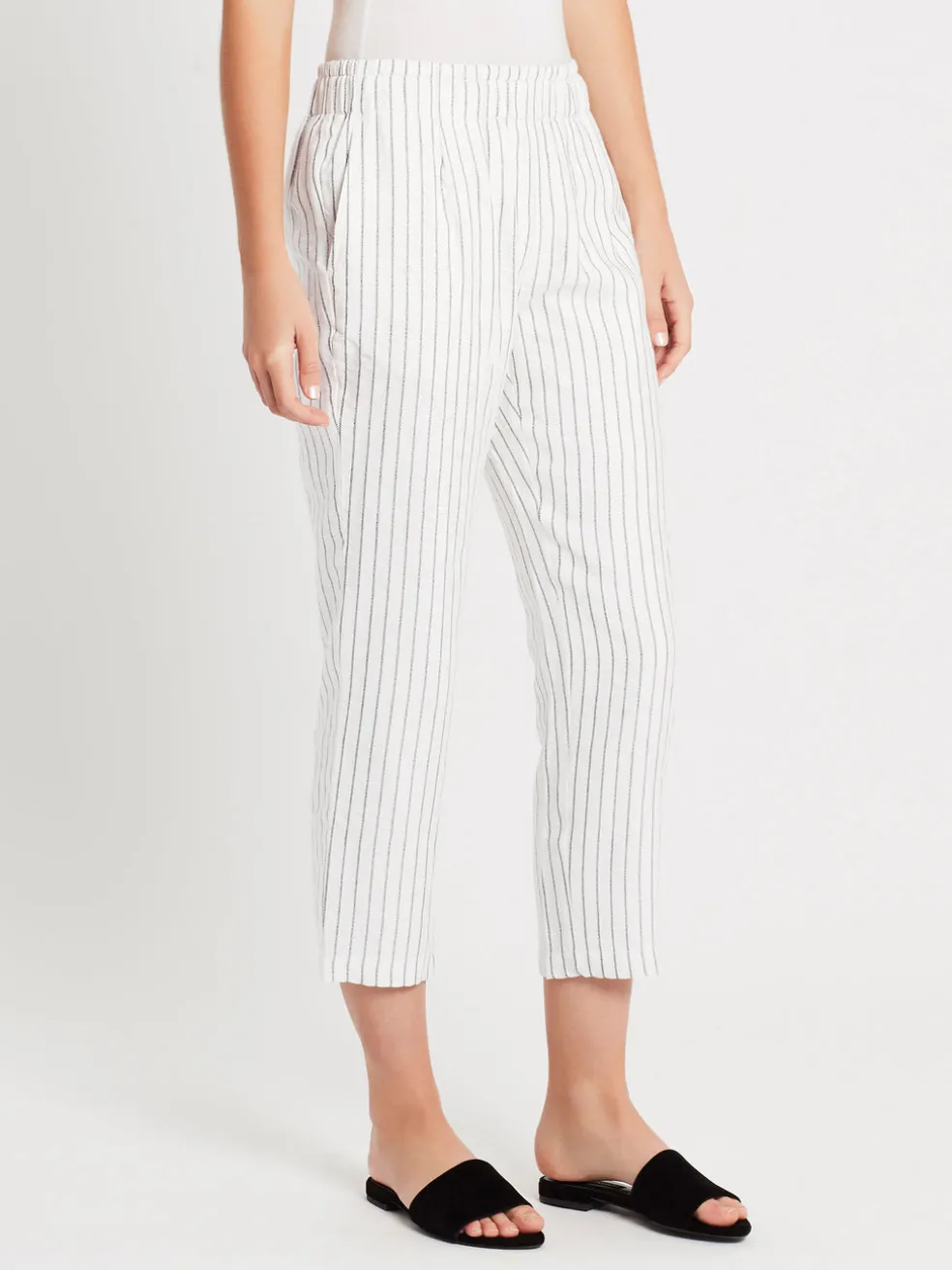 Casual, comfortable, and luxurious – that’s the Joie promise. The Araona Long Pant in Porcelain continues this tradition with a comfortable slouchy look, cotton lining, and a linen/viscose shell. This pull on pant features an elastic waist, side pockets, and a straight leg.