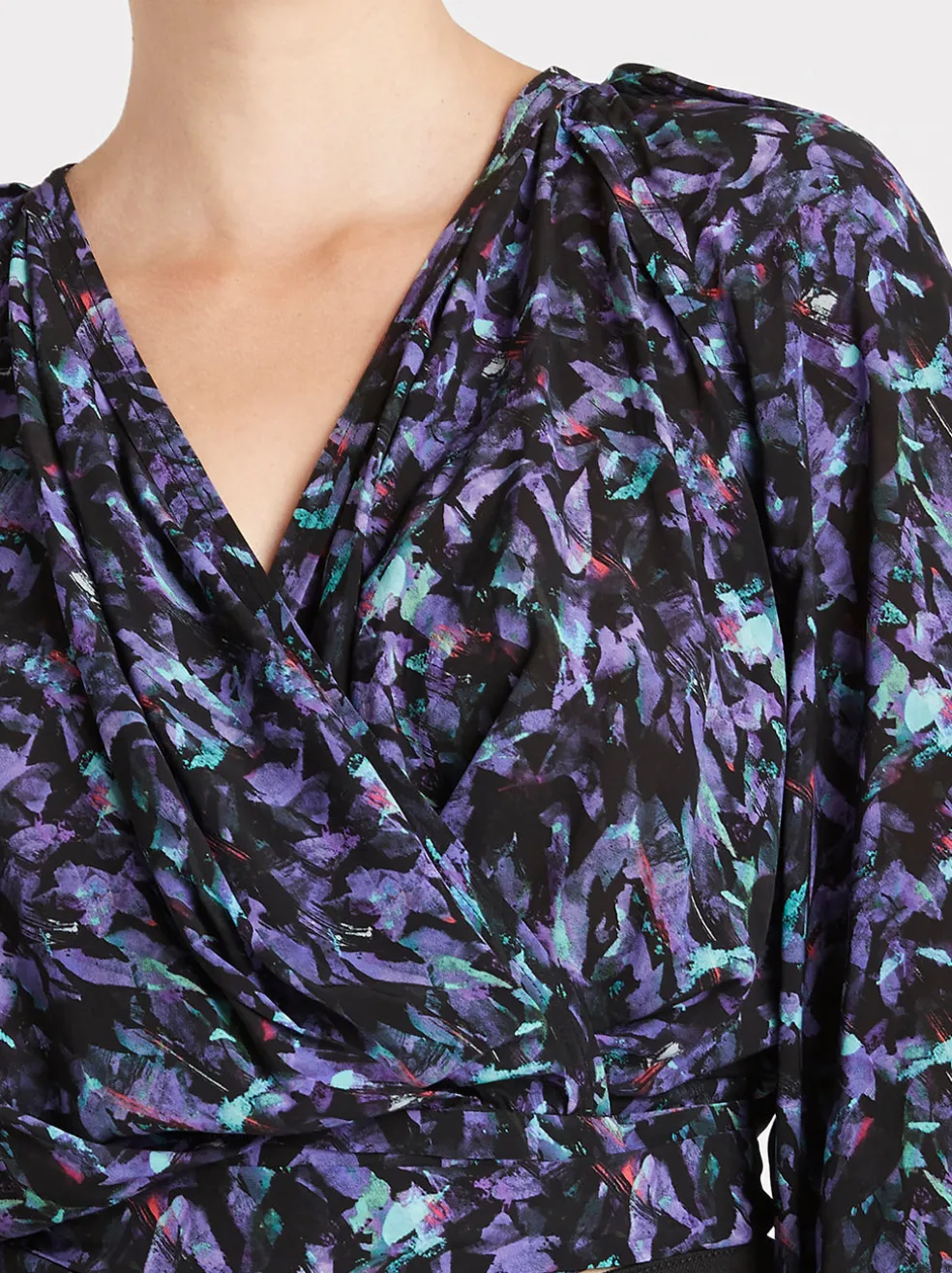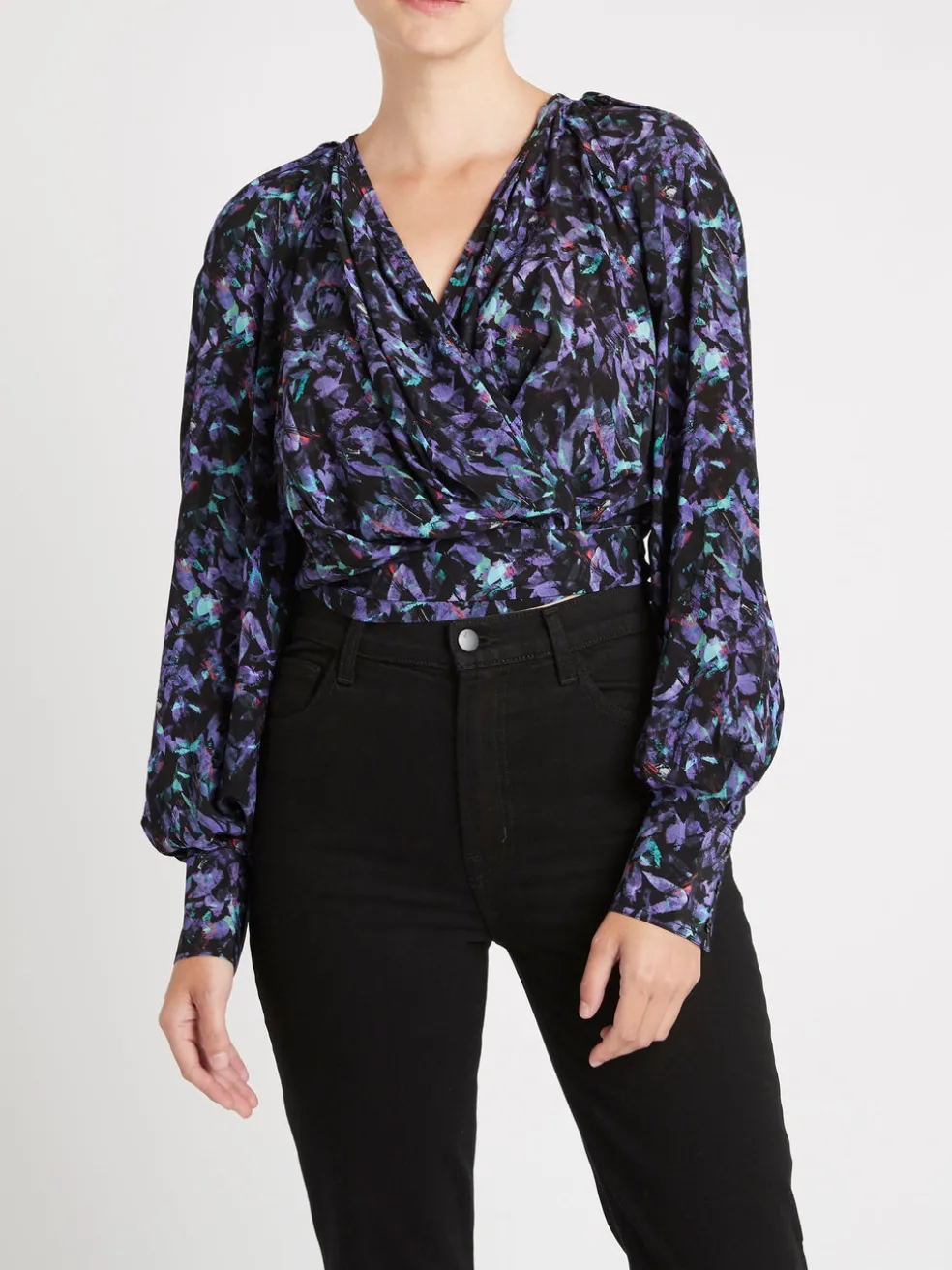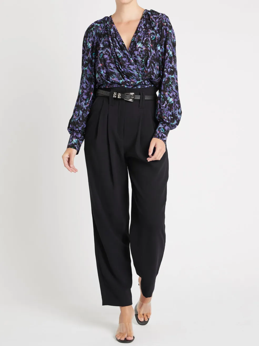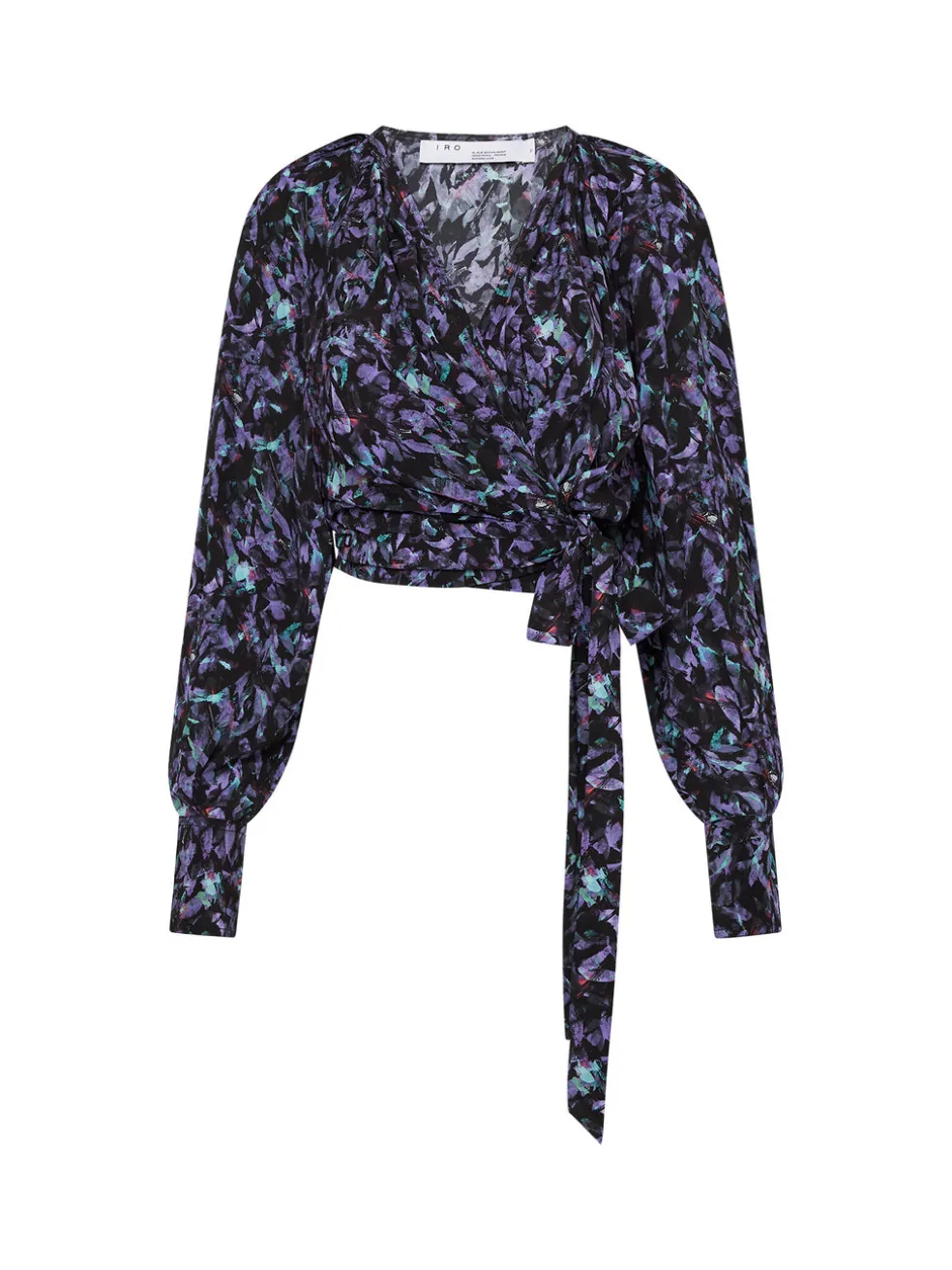 Take things to the next level with the Iro Azza Top in Black Multico. Constructed from 100% viscose this wrap top features long sleeves, a v neckline and a bold print inspired by 80’s graphics. Team with high waisted black trousers and a classic belt for easy style that will take you from the office to the bar.