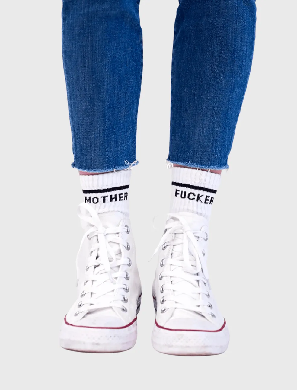Tell everyone who’s boss in the MOTHER Cold Feet tube socks with bold black lettering. These retro styled calf length socks will have everyone putting a dollar in the swear jar just from admiring your totally styling toes.