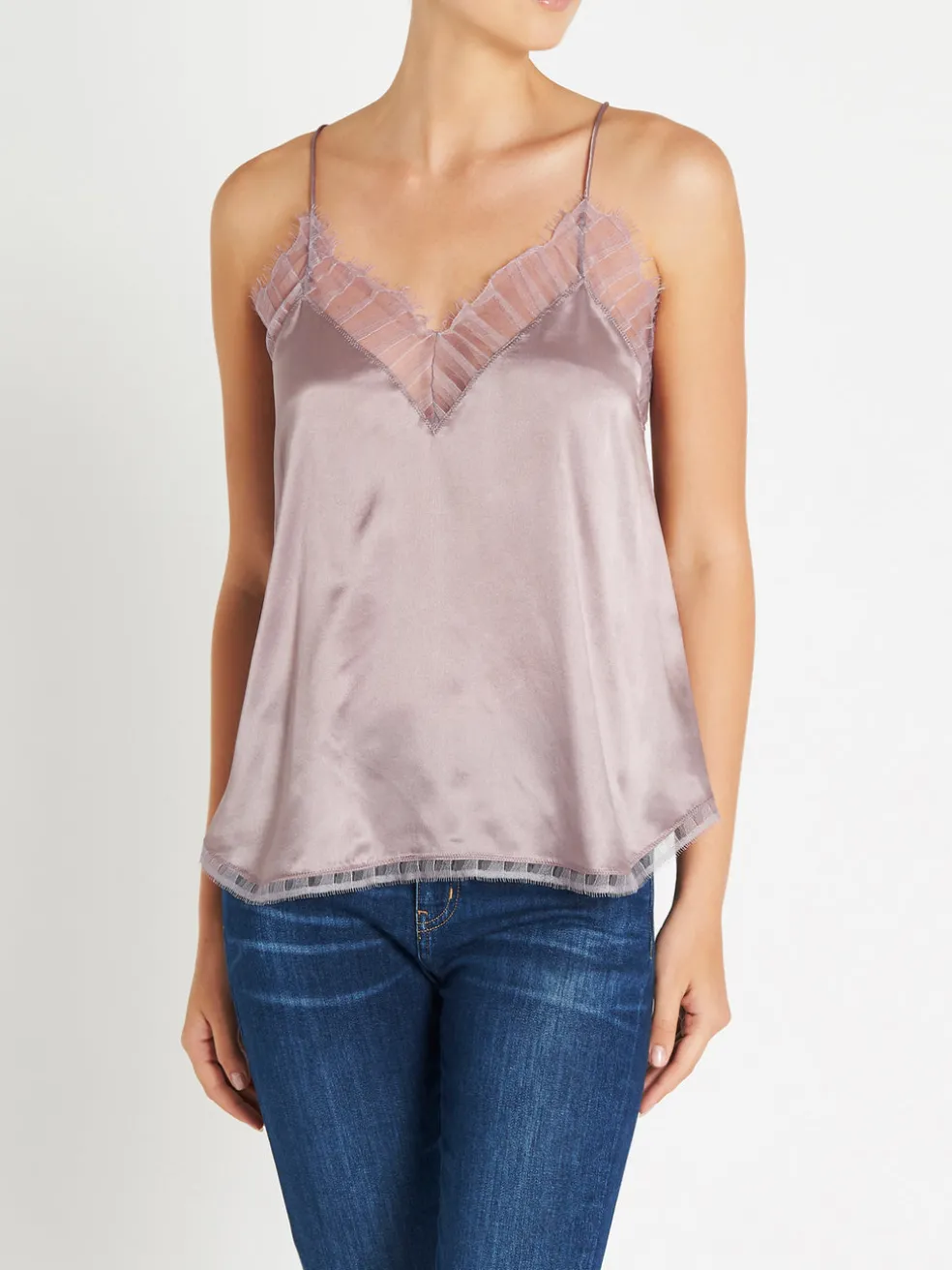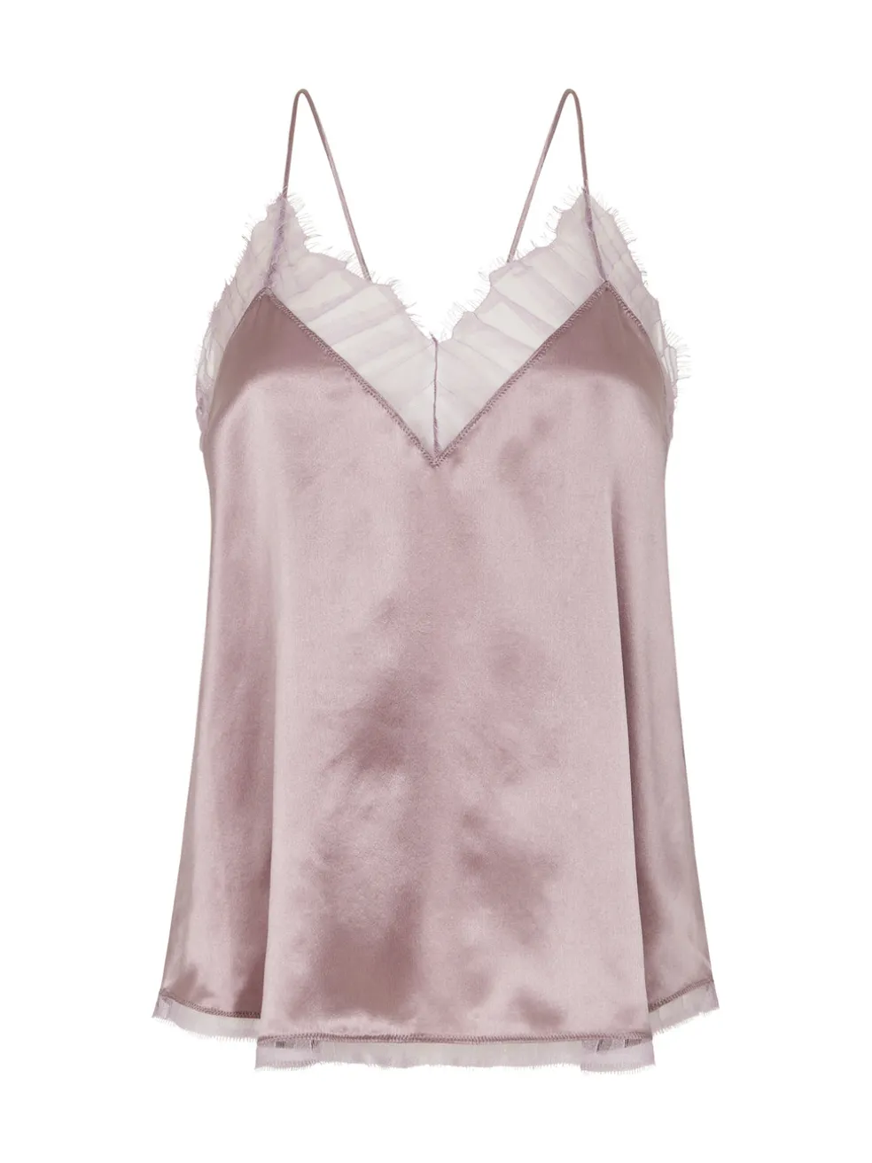 The perfect little cami to spice up your wardrobe. The Berwyn Cami by IRO is constructed from an ultra soft and lightweight silk and comes here in the colour light purple; this camisole features a draped silhouette, spaghetti straps, v neckline and racer back. Lace trims adorn the neckline and scalloped hem to finish the piece. Wear yours over a black bralette tucked into a leather skirt or slip over a simple tee with jeans for a more casual look.