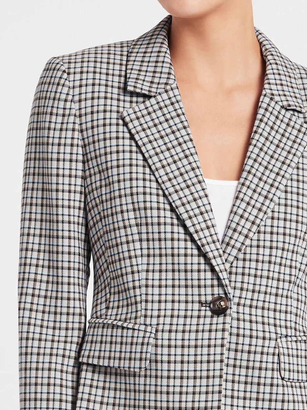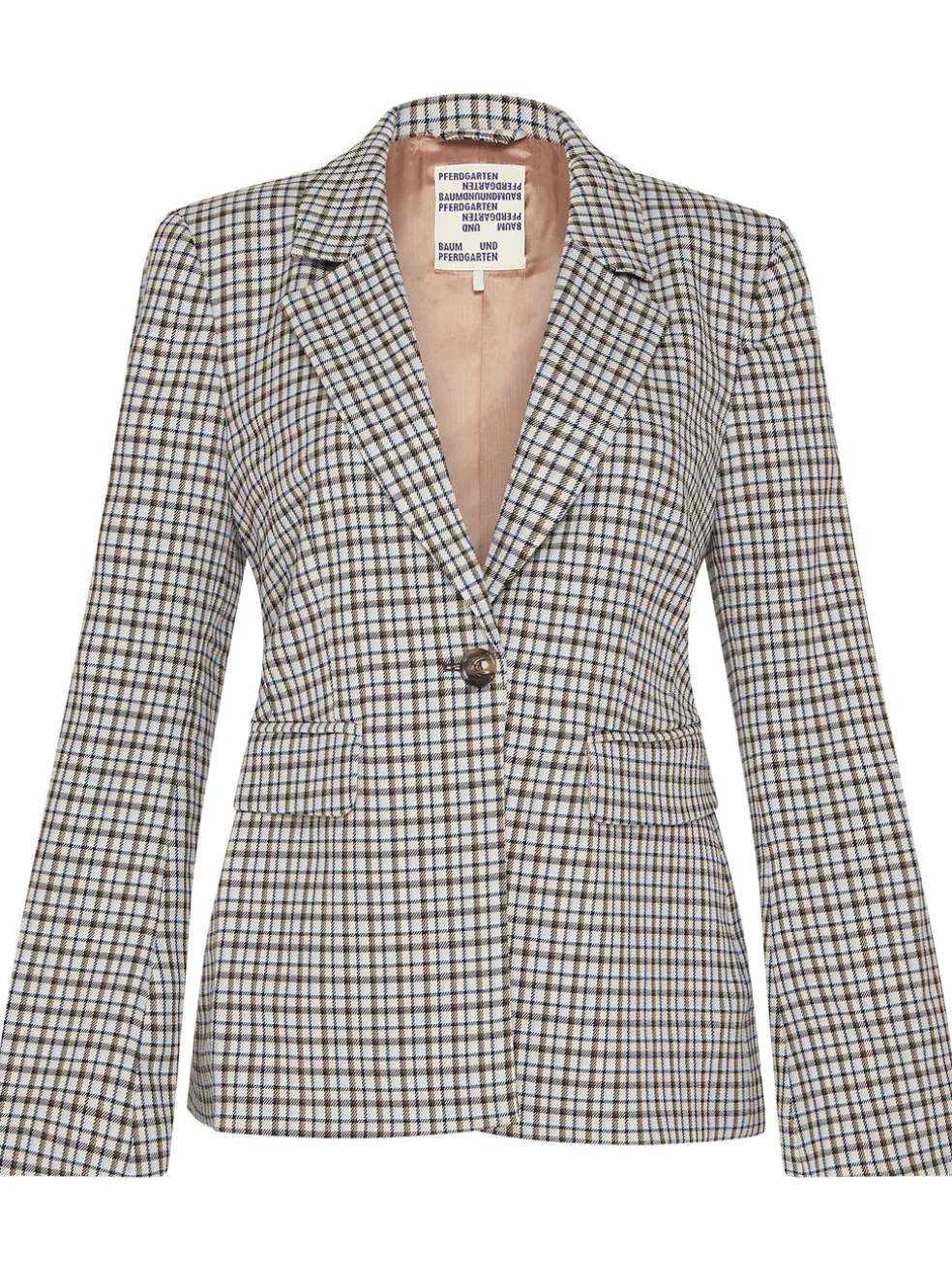 The Baum Und Pferdgarten Blonda Jacket in Dusk Autumn Check brings casual chic to the streets. This fitted blazer with notch lapels and a button closure front can be paired with skinny jeans, or dressed up with fitted trousers for the ultimate in business-boss.