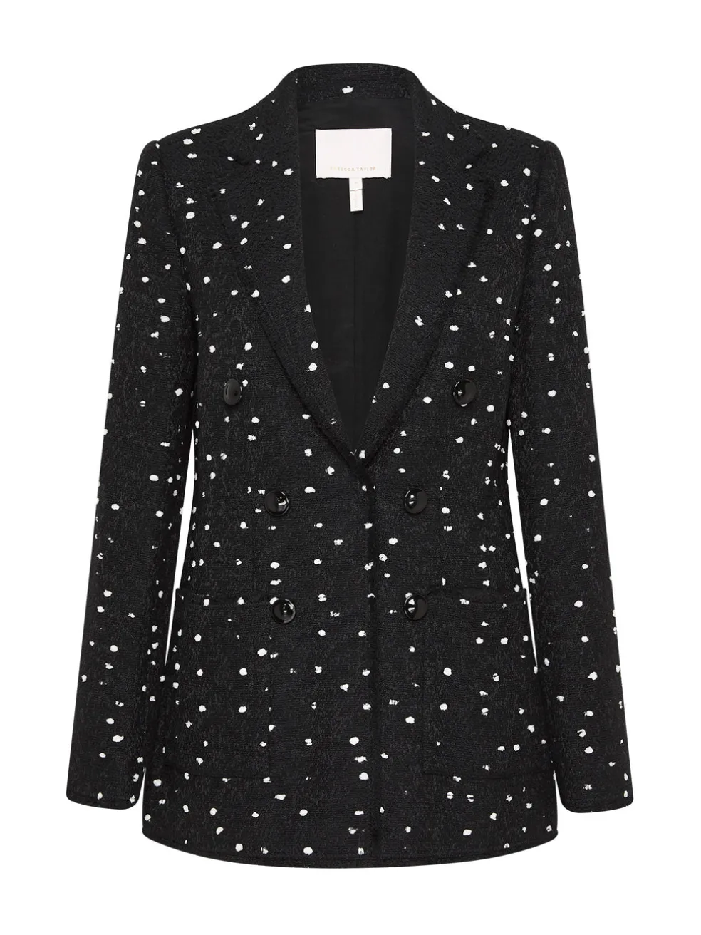 Looking to add fashion sensibility to refresh a wardrobe staple, look no further with the Boucle Dot Tweed Blazer in Black Combo by Rebecca Taylor. Crafted in a tweed polyester blend, this timeless blazer features a double breasted button placket, duel front side pockets and is finished with white woven dots designed to give a modern twist. Pair back with your favourite denim and boots for an effortless polished look.