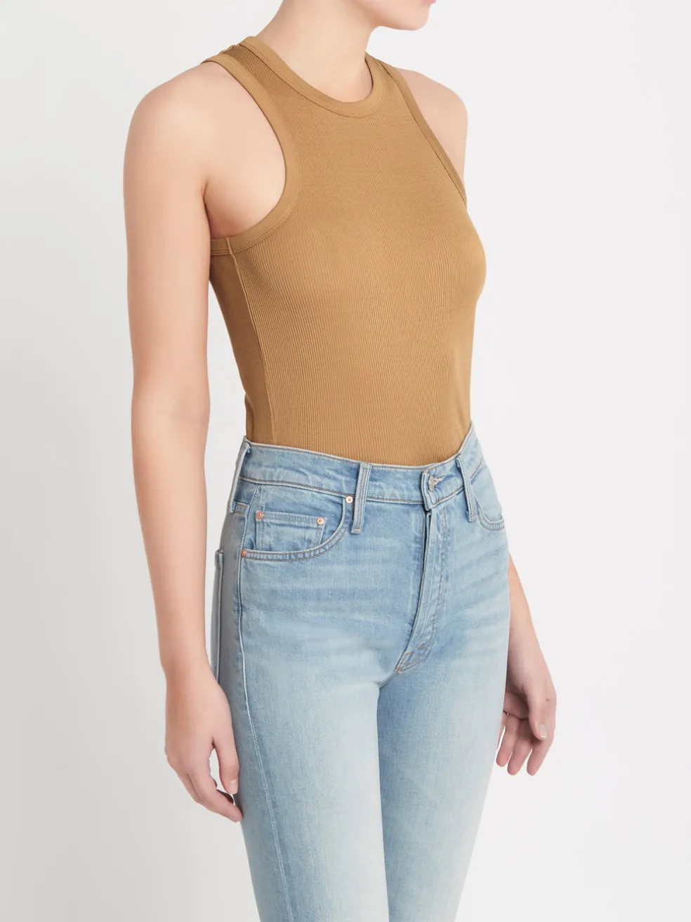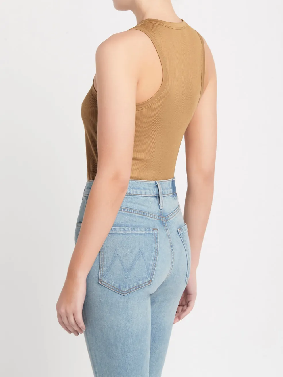 The Les Coyotes De Paris (Róhe) Car Tank in Camel is the ultimate wardrobe staple. Constructed from a ribbed cotton this classic tank top features a high crew neckline, racer back and is a slim fit. Please note that this is the same design house as RÓHE, they have re-branded for the new season; many styles including the Car Tank are classic styles that carry over for multiple seasons.