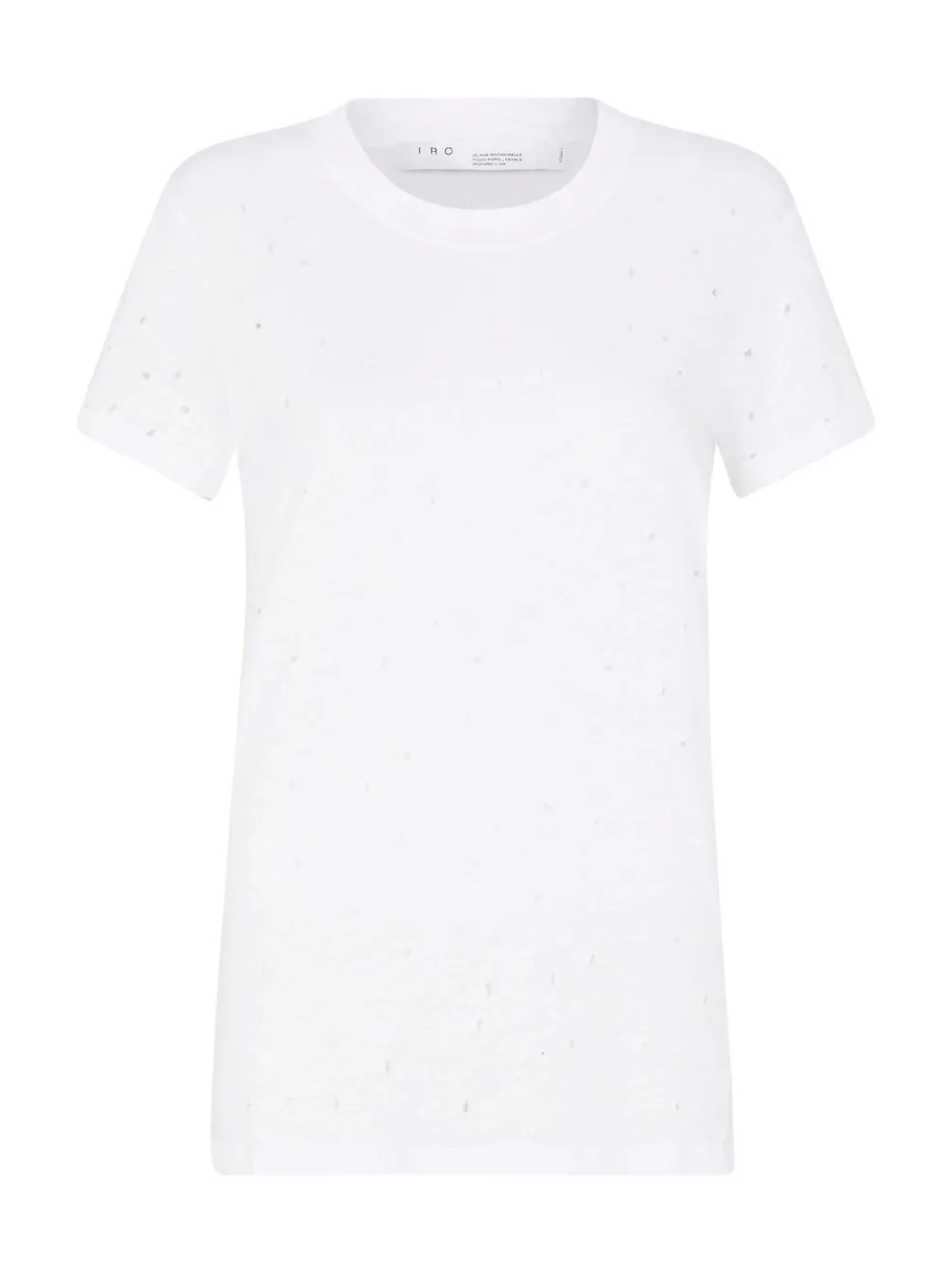 The not so basic basic from IRO, the Clay T-Shirt in Near White is made from a soft linen and features deliberately distressed hole details. Match it back with a faded denim or leather pants for a rock n’ roll look.