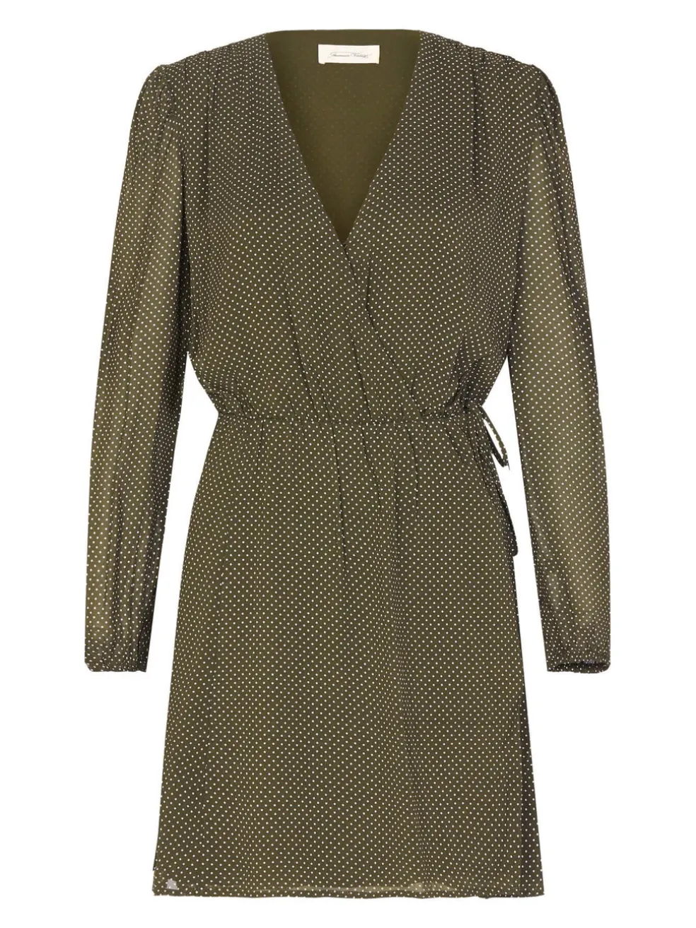 This charming American Vintage Dodoland polka dot dress is the perfect outfit for your Autumn Winery lunches. Featuring a wrap around waistband, V neck, ruched shoulder details and bishop sleeves. The dress is fully lined.