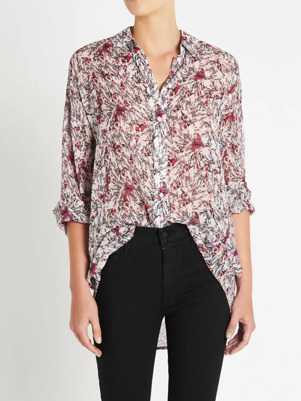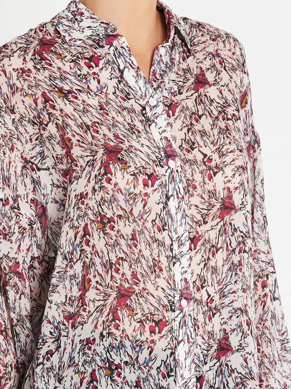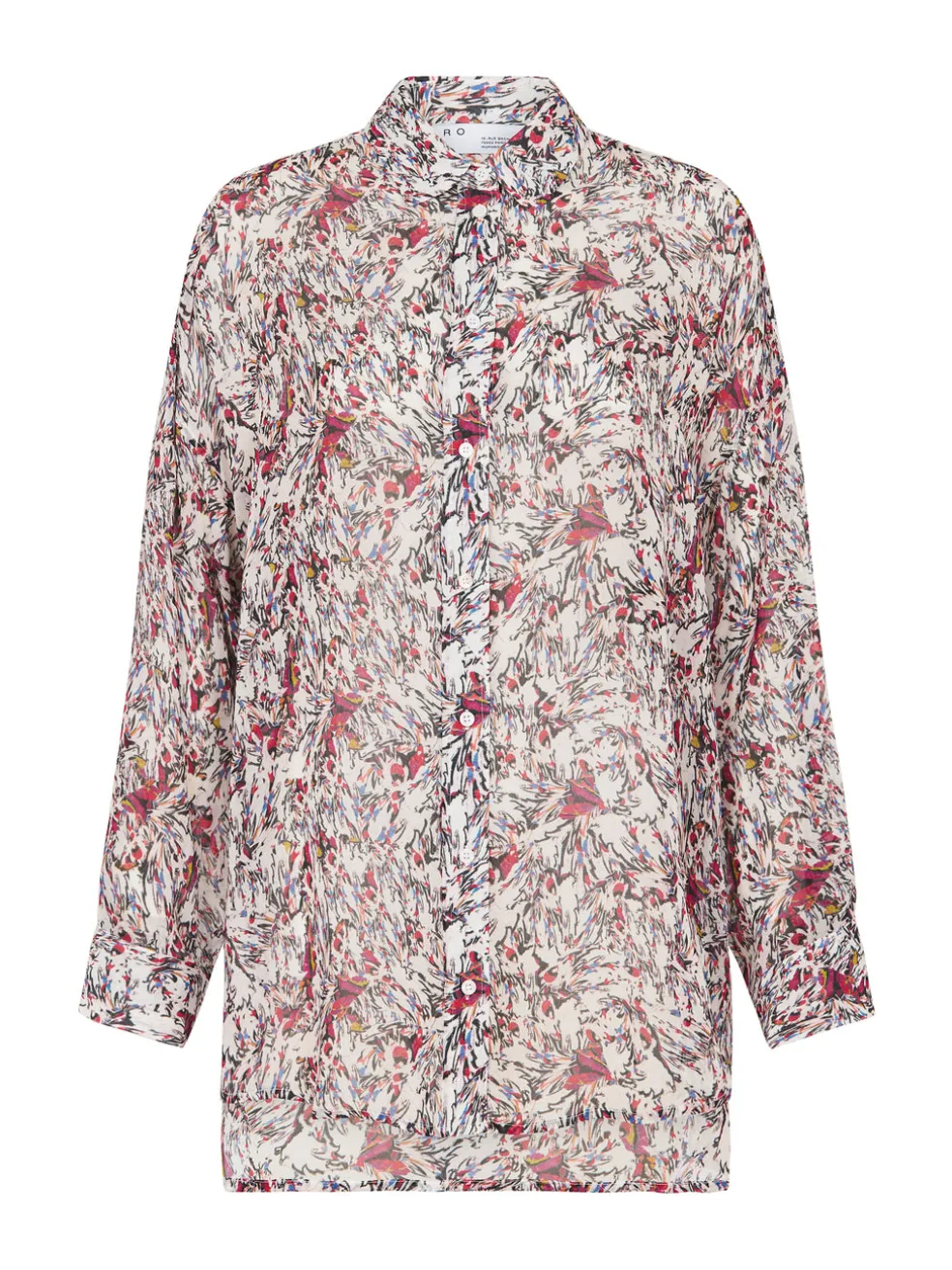 Give a new meaning to effortlessly cool with the Eager Shirt by IRO. The slightly oversized fit drapes perfectly over a white tee and denim for a dressed down Sunday look. Pair the look with some chunky boots or heels for added cool. The soft silky fabric and eye-catching print make this piece a must-have.