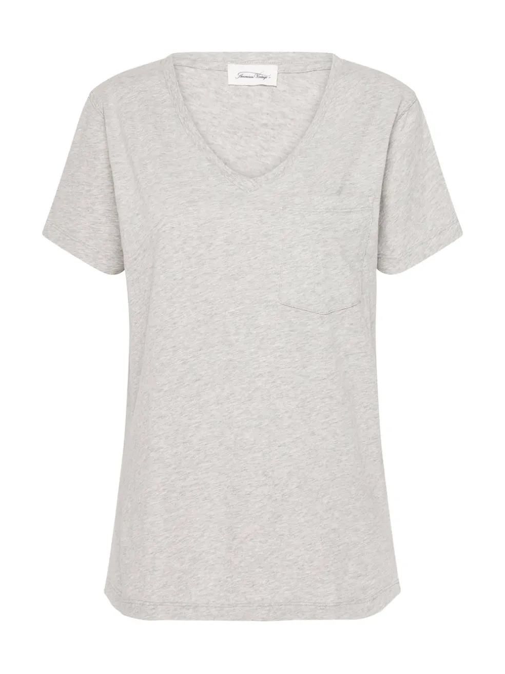 The American Vintage Gamipy V Neck Tee in Heather Grey is an easy addition to your weekend wardrobe. Coming here in the colour Heather Grey this short sleeve tee is constructed from 100% cotton and features a v neckline and patch pocket.