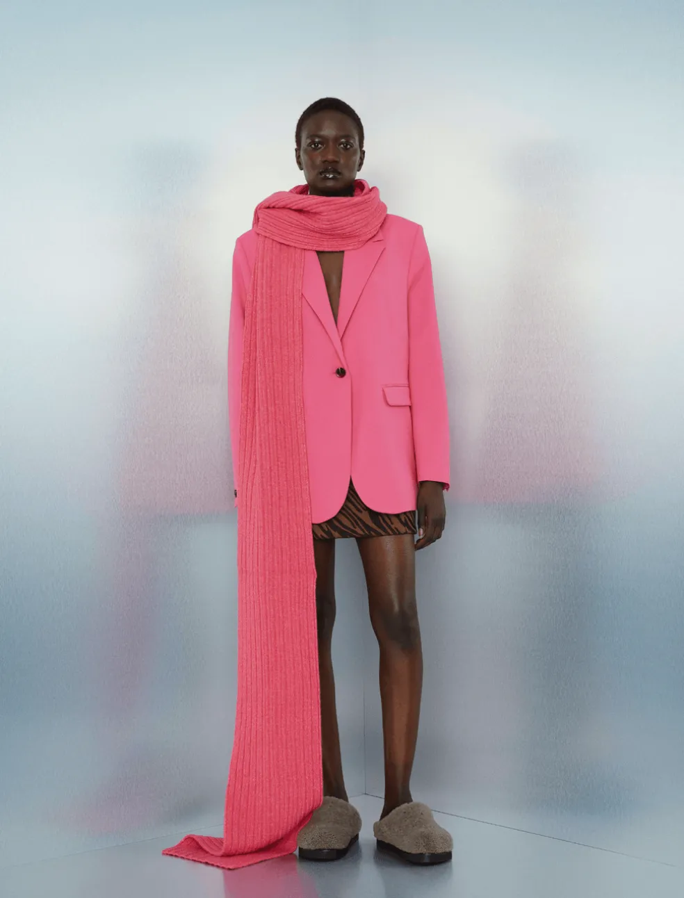 The best selling Haven Oversized Blazer from Samsoe and Samsoe is back in Fandango Pink. This stunning single breasted blazer is made from enviromentally friendly fabric which is crease resistant – making it the ultimate piece for everyday wear. This style features a notched lapel collar, twin front pocket with flap closure and secret inner pocket. Soft shouilder pads help to ad form to the oversized fit. Fully lined.