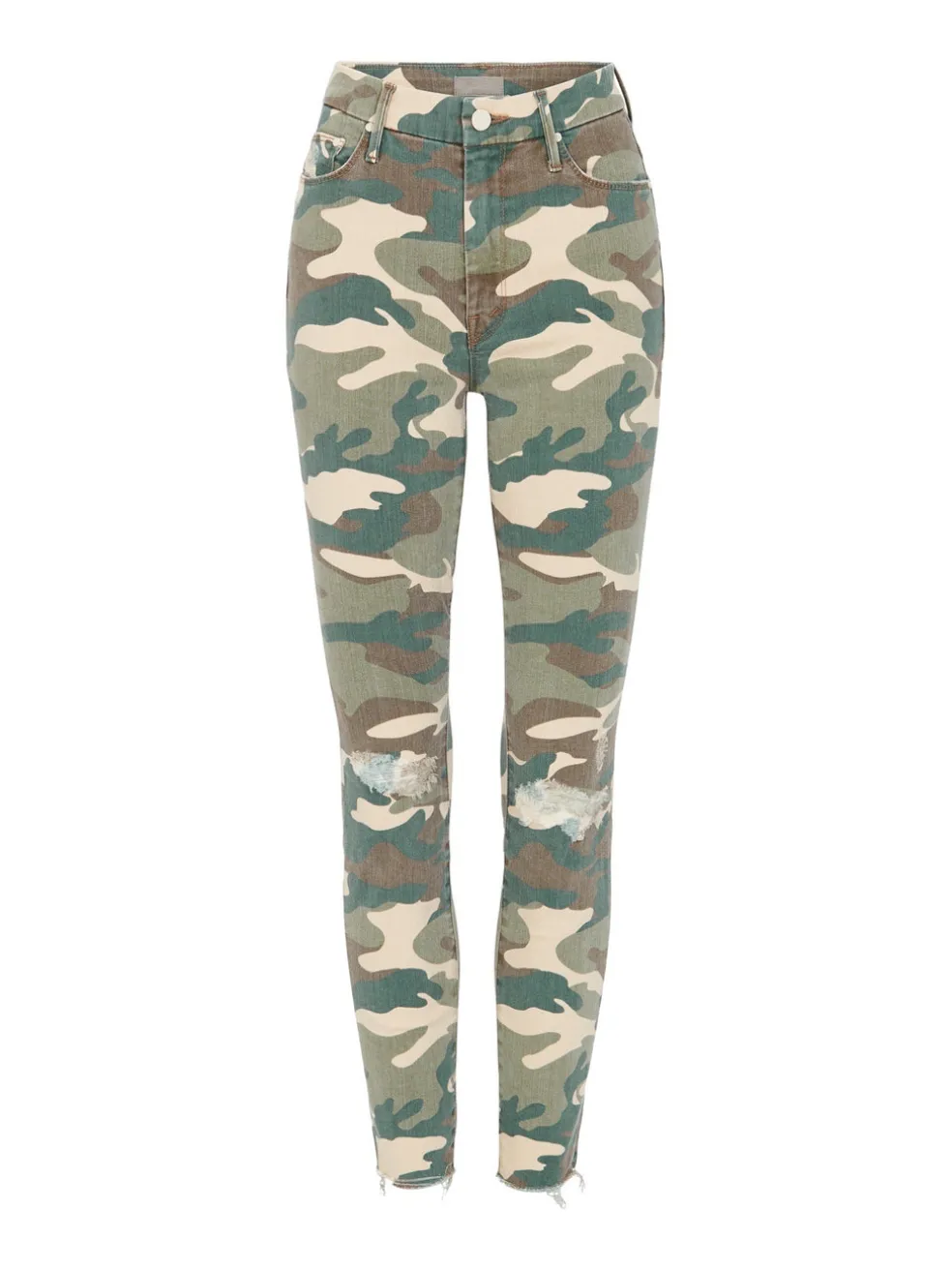 Jump on the cargo print bandwagon with the Mother Denim High Waisted Looker Ankle Jean in See Me. Constructed from a cotton, polyester blend these printed jeans are high waisted and feature a centre front zip fly opening with button closure, side and back pockets, distressing at the knee and are finished with a cropped raw hemline.