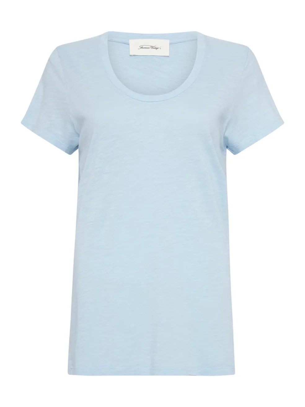 The American Vintage Jacksonville Scoop Neck T-Shirt in Vintage Blue Sky is a must have basic item, that can be worn all year round. Made from a lightweight cotton blend, this American Vintage round neck tee is the perfect match for your favourite pair of skinny leg denim jeans.