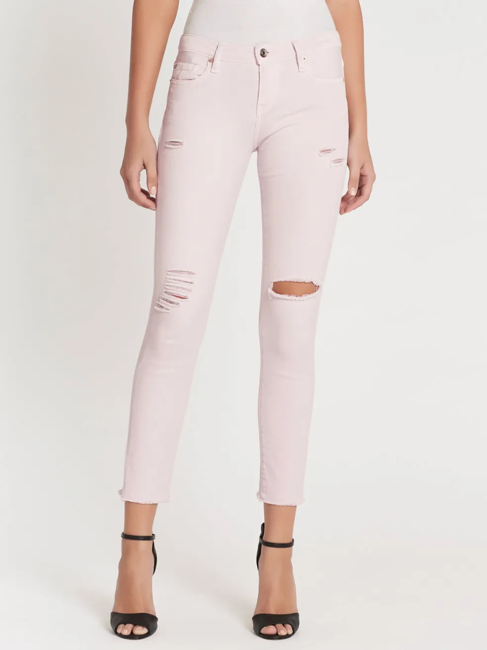 Update your off-duty style with the IRO Jarod Jean in Pink. Constructed from a cotton and elastane blend these low rise skinny jeans feature a single button zip fly opening, side and back pockets, distressed details and are finished with a raw cut hem.