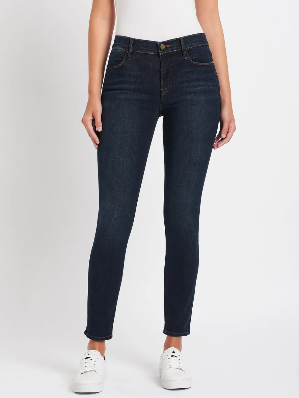 Find the ultimate Contemporary Skinny Silhouette with the Le High Skinny Jean in Harvard by Frame Denim. These 70s inspired high rise jeans feature Frames signature Premium Denim in a Dark Blue Wash with Super Stretch and Strong Recovery. Pair back with a feminine and flats for an easy work to weekend style.