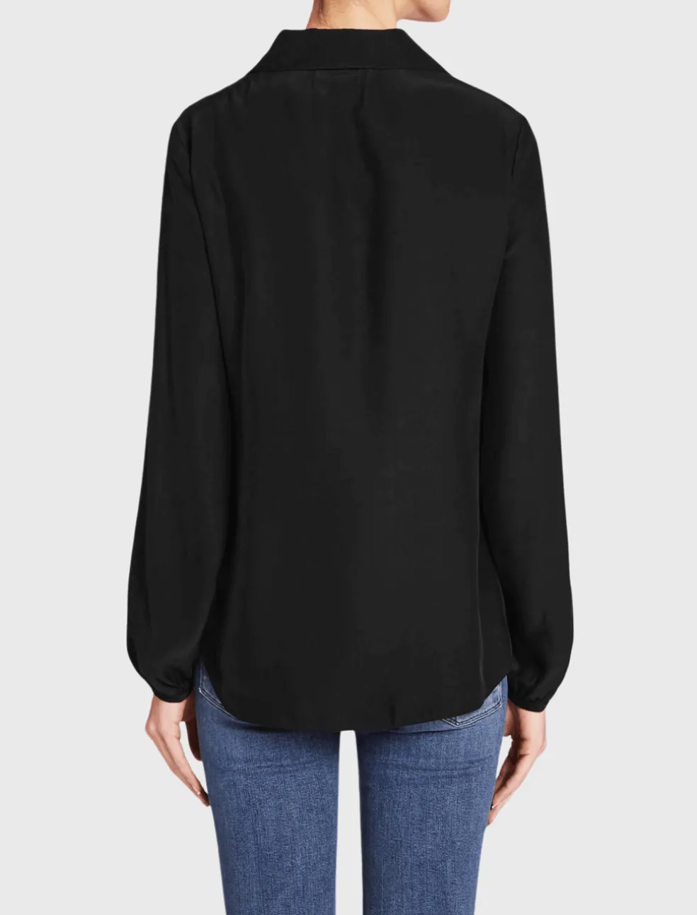 This floaty silk blouse from Frame Denim features a cross over lace up neckline with a classic shirt collar. The Le Lace Up Blouse features elasticised cuffed sleeves and a curved hem.