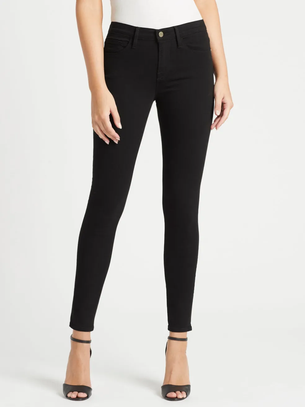 Forget the TikToker’s and side part revolutionaries – skinny jeans live on! For the perfect go-to skinny leg jean, look no further than the Frame Denim Le Skinny Jean in Film Noir. This super stretch jeans features a single button zip fly closure with gold hardware, a mid rise and front and back pockets. Made from Frame’s famously comfortable cotton you will feel like your wearing leggings.