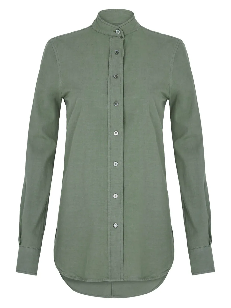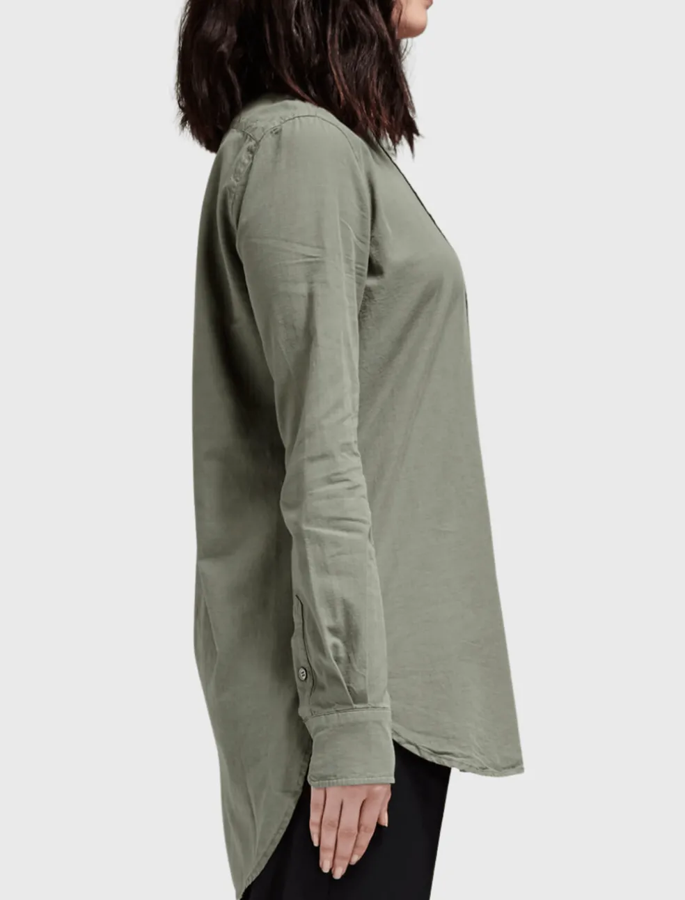 The Le Tunic Shirt in Military from Frame Denim is a cotton collarless shirt, and features a hi-lo hem. This super chic military style shirt works back perfectly with your favourite leather pants to create a stylish silhouette with little effort