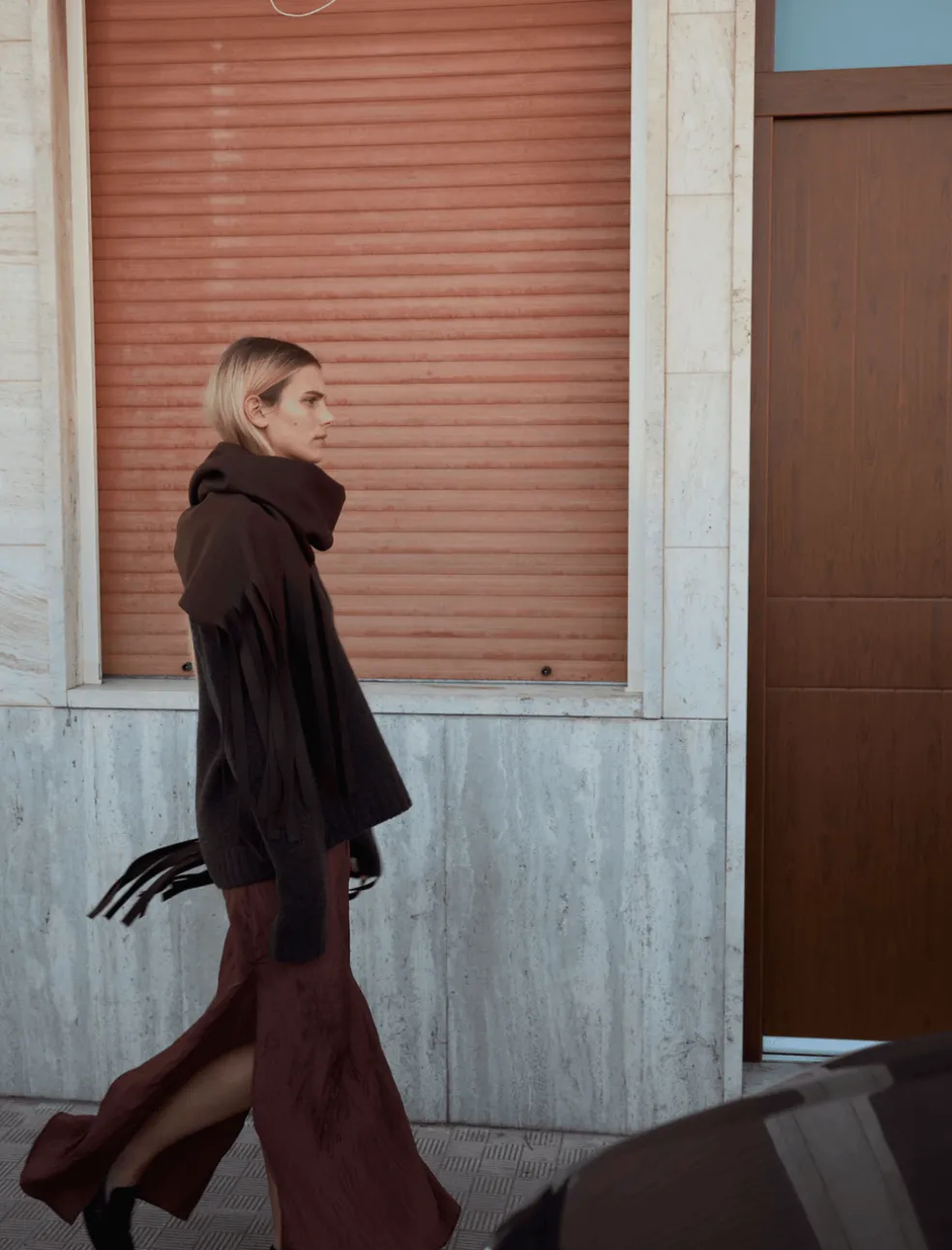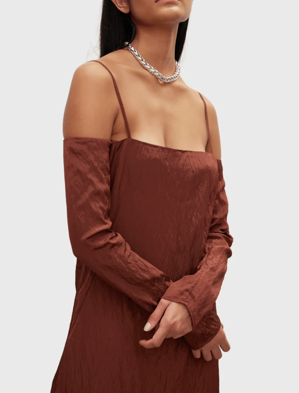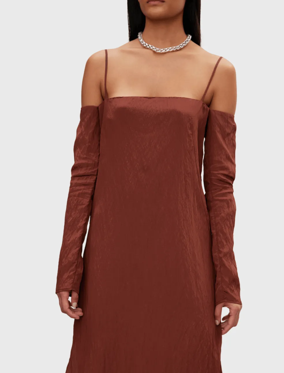 Channel your inner Italian Goddess, and bless us mere mortals with a glimpse of you in the Róhe Linnie Dress in Rust. This stunning dress is crafted from a crushed fabric from Italian mill Giolica. Designed with constructed loose sleeves, and special fine cord detail at the back, you’ll turn heads, and bring nations to their knees.