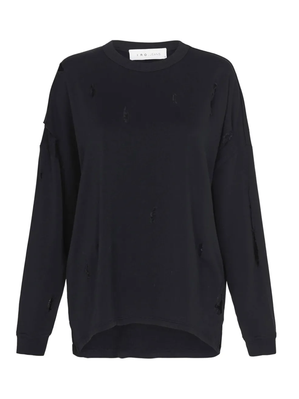 This super soft slouchy sweatshirt from IRO is the perfect through on piece for your casual Sunday brunch. Featuring some chewed-up holes and gashes through out, punk rock is alive and well with the Lyzza Sweatshirt.