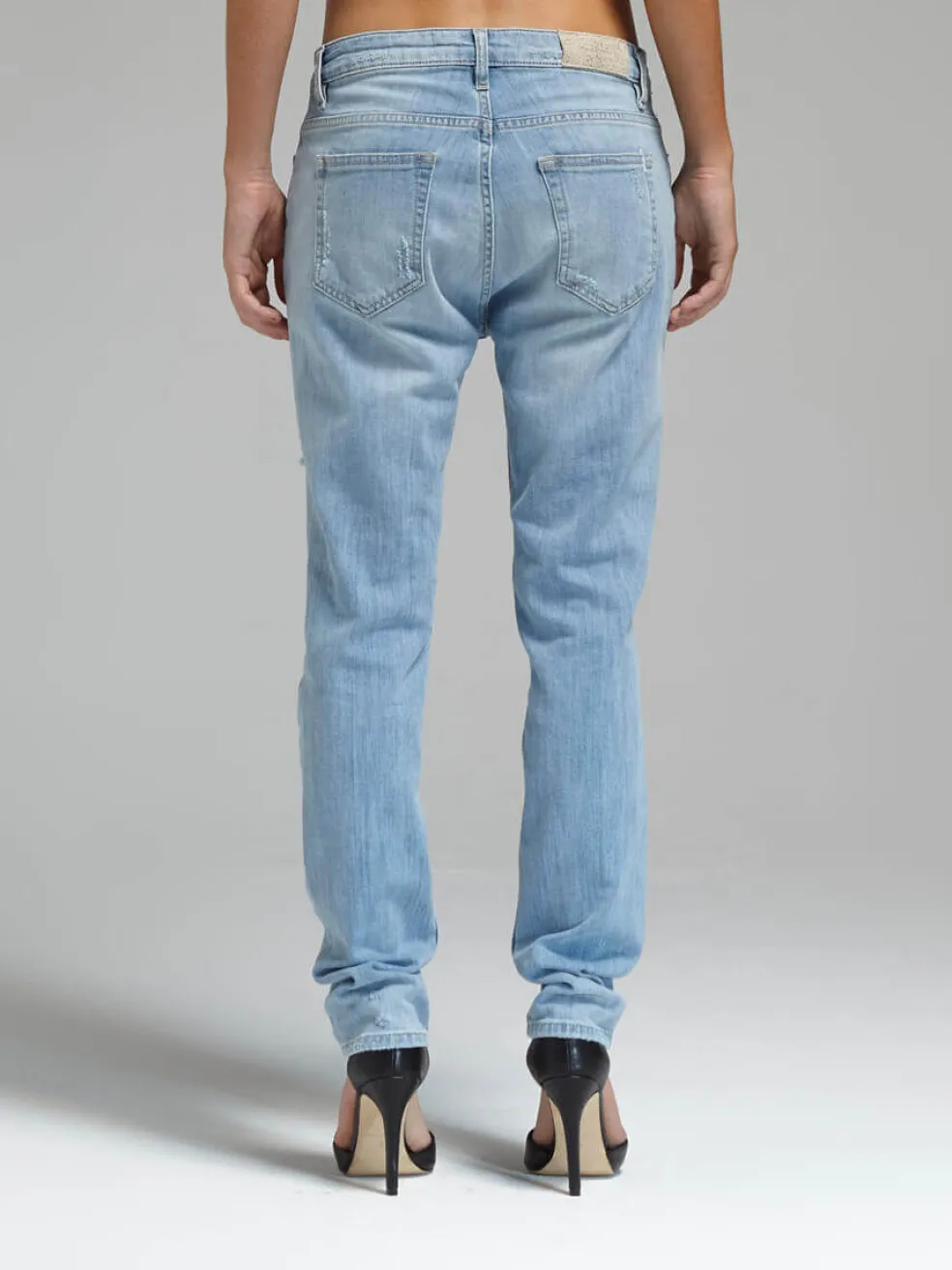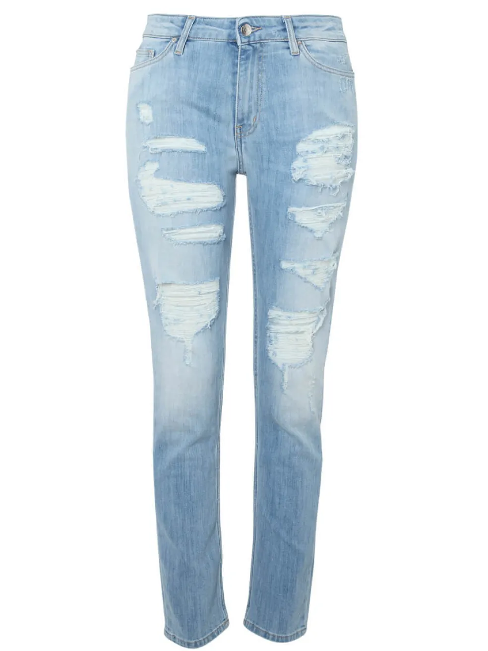 The amazing Mandy Destroyed Garcon boyfriend jean from IRO Jeans have a low slung waist, a low rise and twin pocket detailing at the back. These jeans feature bleached out details across the knee and are destroyed along the thighs. Finished off with silver hardware.