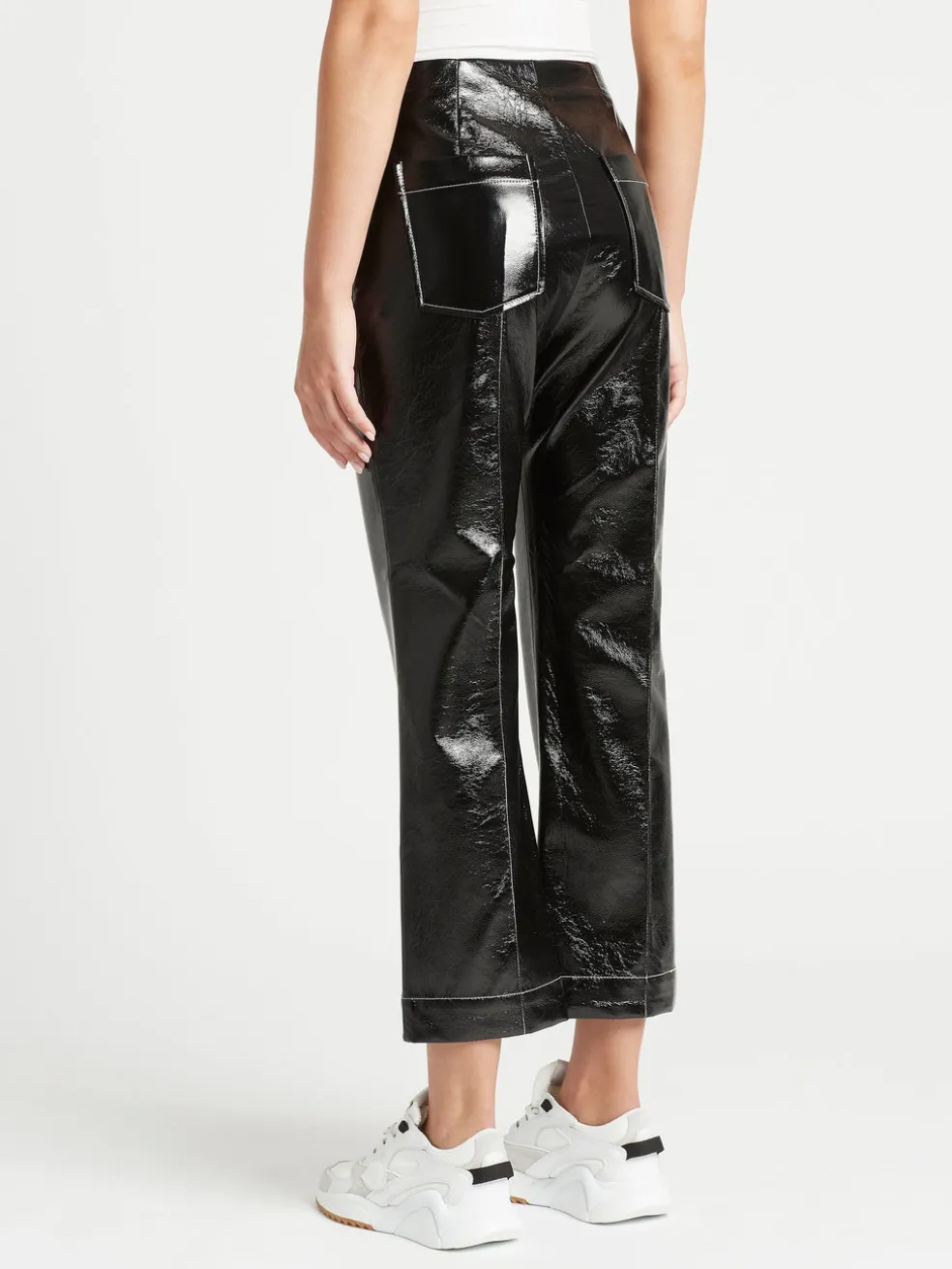 Style meets elegance with the Baum Und Pferdgarten Nardea Pant in Black. These patent cropped trousers feature a shiny lacquered finish, two patch pockets on the back, contrast stitching detail and are finished with a subtle flare at the hem. Team with the Baum Und Pferdgarten Bracca Jacket for the full look or simply style with a white crew neck tee and classic slides for no fuss style.