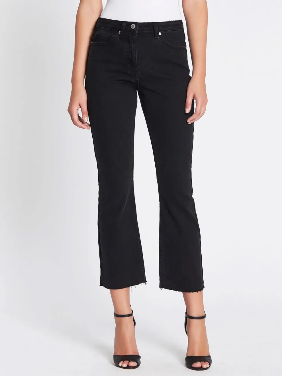 The Camilla and Marc Neve Jean in Black is the perfect vintage inspired cropped jean to add to your wardrobe this season. Constructed from 100% cotton these cool girl jeans feature a subtle flare, brushed silver hardware, a button fly and are finished with a raw cut cropped hem. Please note, this style is rigid and will feel extremely firm on first try on, as it will mould and soften to the body during and after wear.