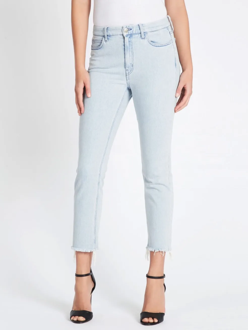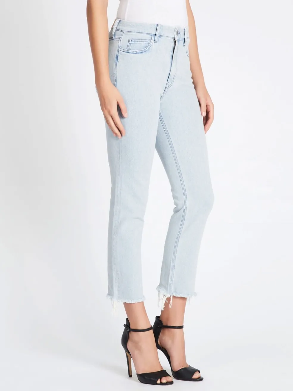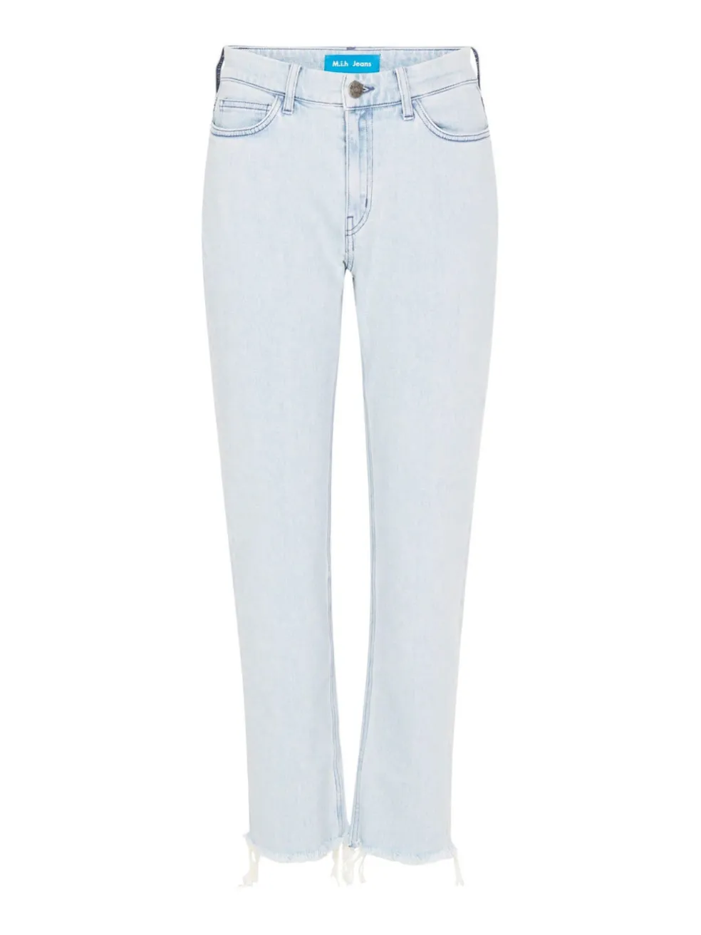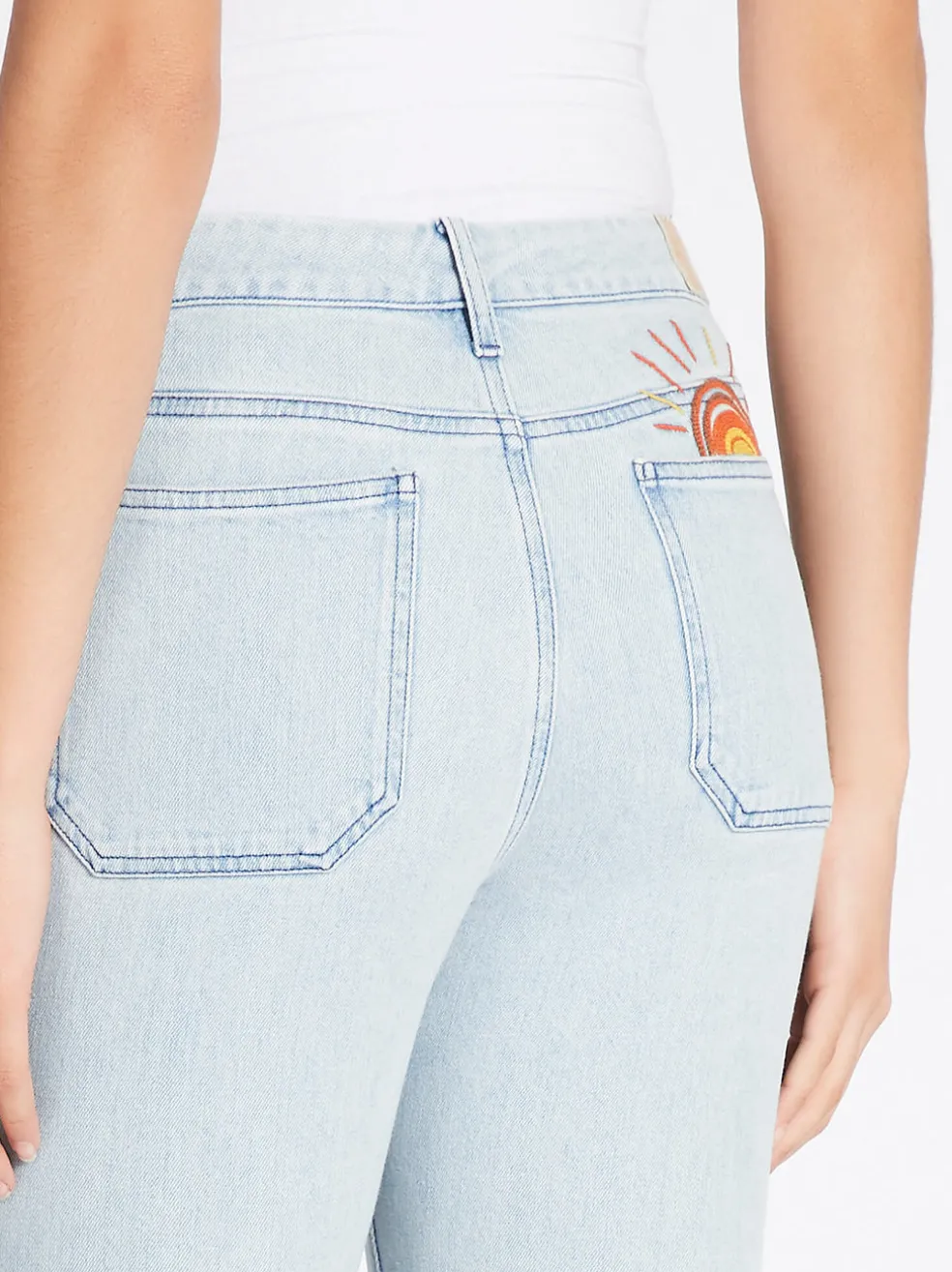 The classic vintage jean has been re-worked to give you the M.i.h Jeans Niki Jean in Ball. Constructed in a pale stonewash shade these stretch cotton blend jeans are a high rise, slim straight leg and feature silver hardware, front and back pockets, a raw frayed hem and have been finished with a sun-ray embroidery over the back right pocket.