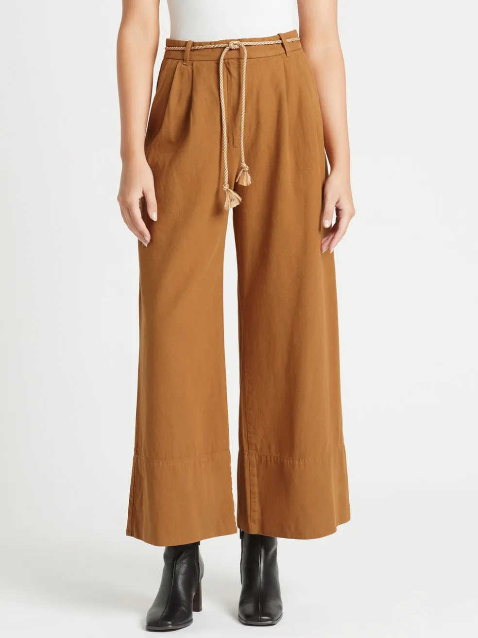 Up your pant game with the Baum Und Pferdgarten Nour Pant in Rubber. Constructed from an organic cotton and linen blend these wide leg pants feature a high waist, wide leg with exaggerated hem and is finished with a super stylish rope style belt.