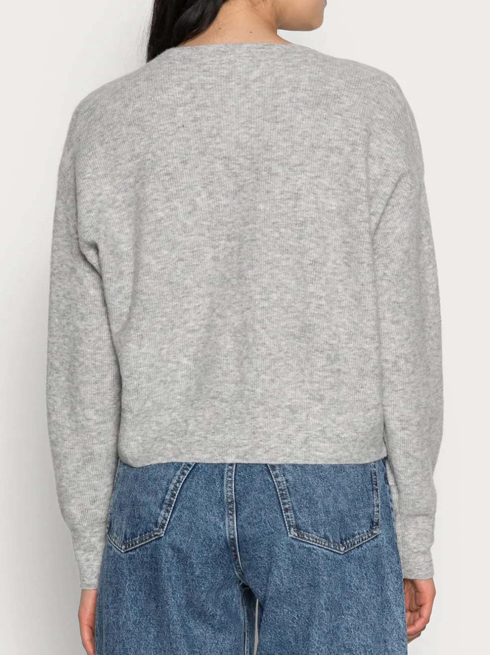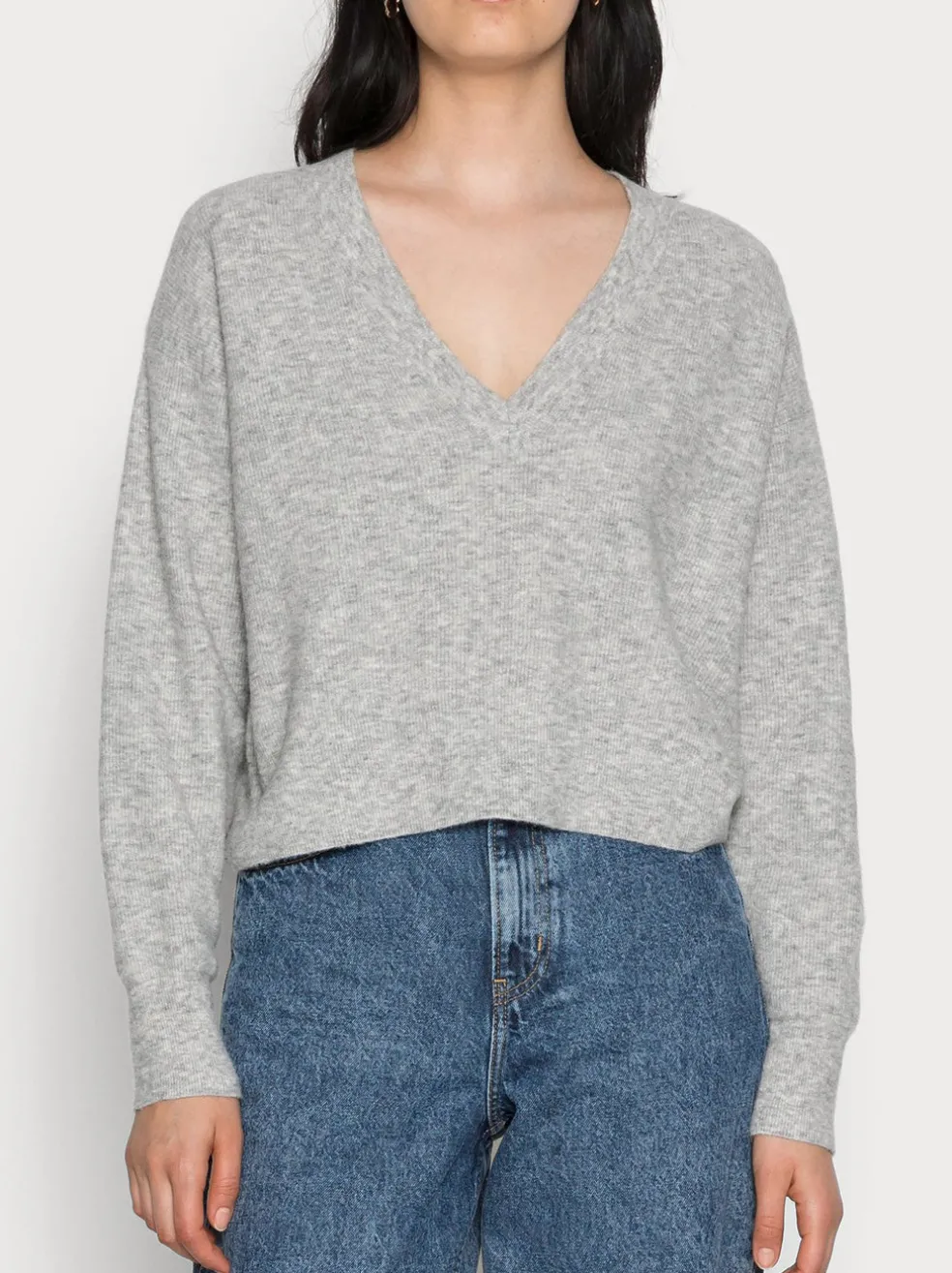 Your most loved knitwear is back for the new season, French basics brand American Vintage brings you the Noxon Sweater in Heather Grey. The cropped boxy style sweater with a V Neck and ribbed knit fabric is the perfect piece to wear with your high waisted jeans. Through it over a button down shirt and team up with your favourite sneakers for the perfect weekend look.