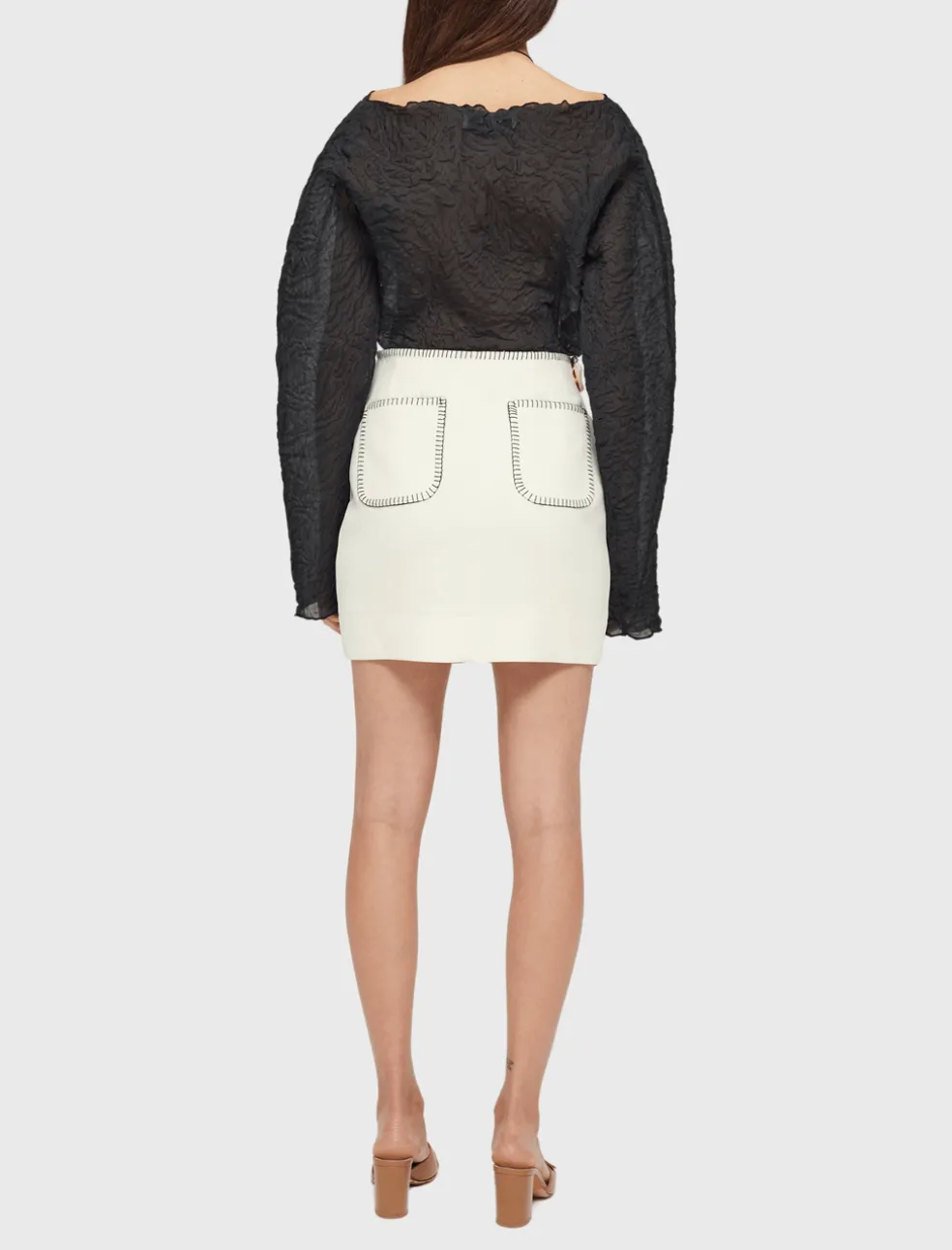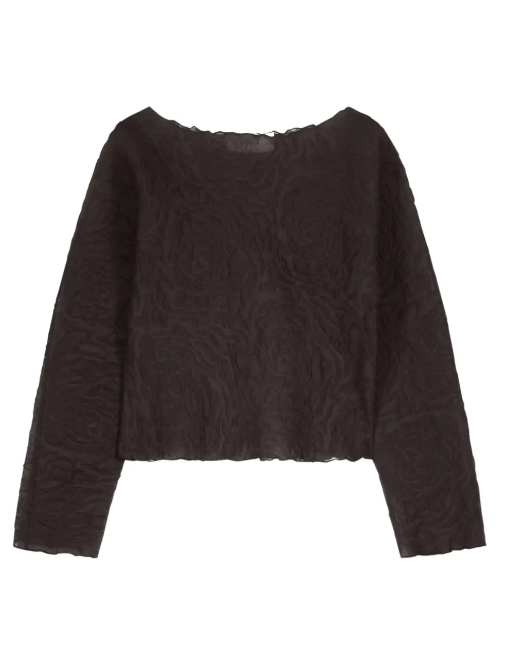 Make a statement in the Róhe Organic Shaped Top in Noir. Constructed from a fine structured technical fabric, the Organic Shaped Top is sure to turn heads. Tucked in to a skirt, or flowing over jeans – you can make it work for any and every occasion. Please note that this item is sheer.