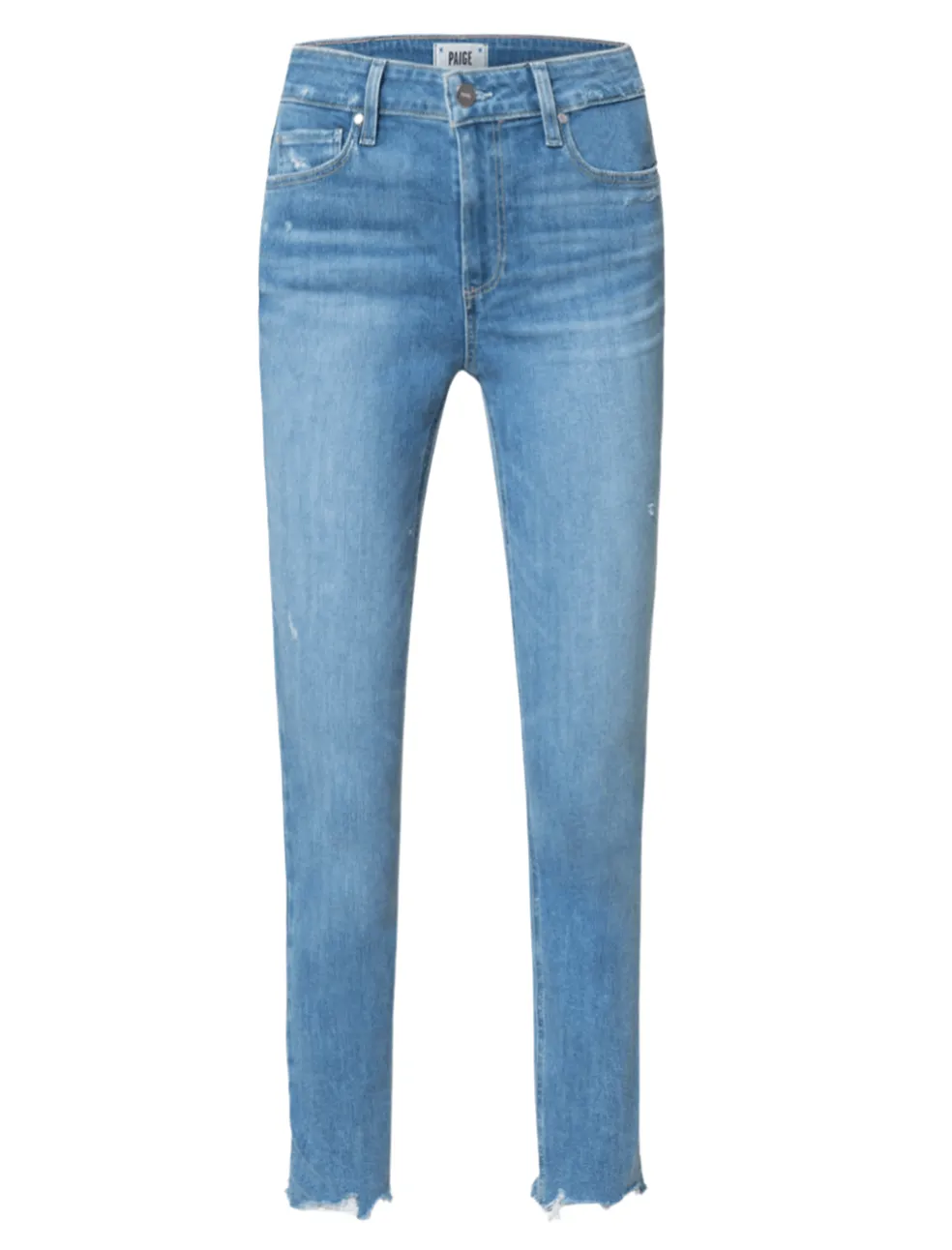 Long Live The High Rise Skinny! Paige is back with their much loved Hoxton Crop Jean in Bliss Distressed, which features natural distressing and a raw, destroyed hem. A fitted shape from the hip to the leg opening, the Hoxton Crop Jean has the look of vintage denim, but the comfort of stretch and recovery, thanks to Paige’s own TRANSCEND VINTAGE denim. This jean was made to be moulded to your body. Perfect for running errands and lounging on the couch scrolling on your phone.