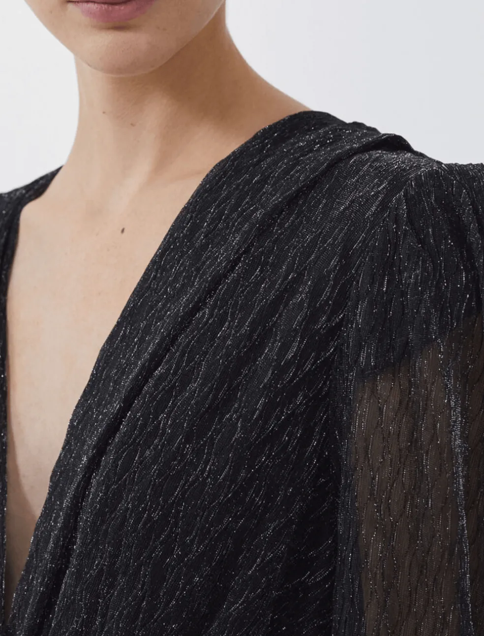 As the sun sets, the stars come out to play, and so does the IRO Patia Dress. This stunning creation is a tribute to the beauty of the night sky and will leave everyone starry-eyed with its sparkling black and silver knitted mesh fabric. With its flattering faux wrap mini skirt and delicate v-neckline, this dress is perfect for any occasion.