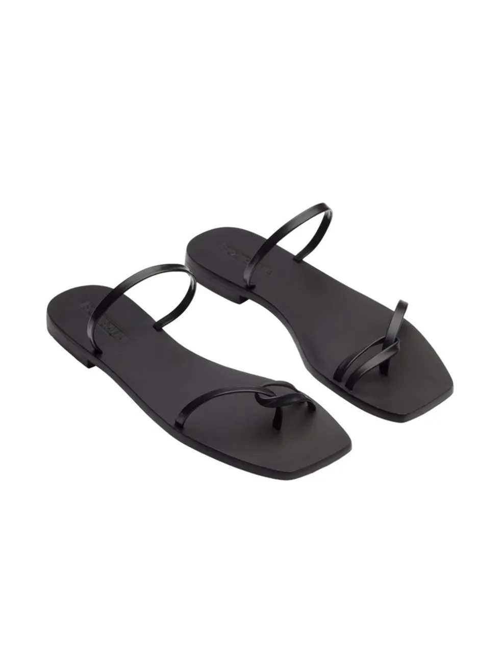 Complete your look with modern minimalism in the Sol Sana Peonie Slide in Gloss Black. Featuring ultra thin straps with a high gloss leather finish, these open toe slip on slides lead the way with versatility.
