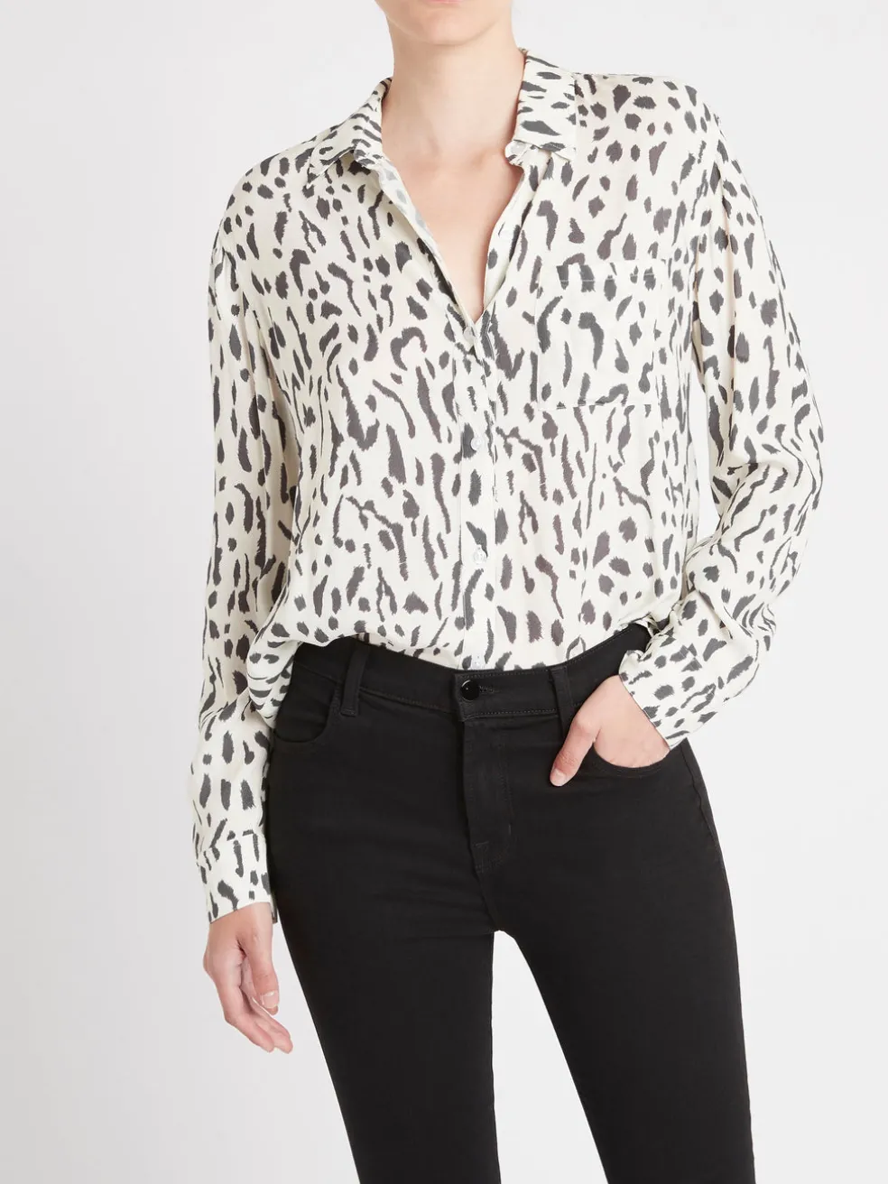 Express your inner wild with the Rails LA Rocsi Shirt in Ivory Cheetah this season. Crafted in their signature soft rayon, this super soft long sleeve features a classic collar, button down fastening with Ivory and Black Cheetah print and is finished with a single chest pocket. Pairs perfectly with denim or a trouser for the ultimate work to weekend style.