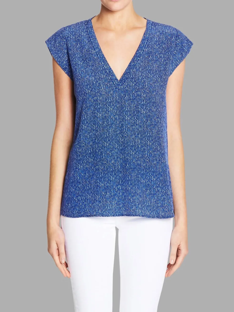 The Joie Rubina Top is the perfect wardrobe classic with a modern twist. Featuring a V neck and cap sleeves, this relaxed silhouette is crafted from a lightweight soft silk with a luxe dot print. Team this with your favourite black pants or skirt for an instant classically stylish look.