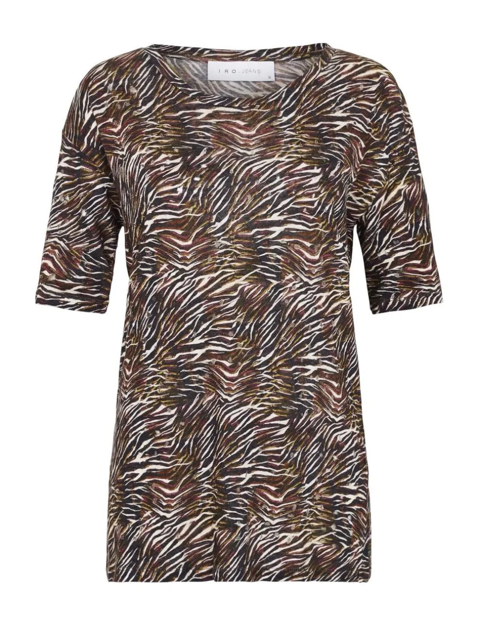 The IRO JEANS Shay Tee is the perfect piece to add a touch of the exotic to your wardrobe with a khaki zebra print. This lightweight tee features drop shoulders and a round neckline for easy-going comfort.