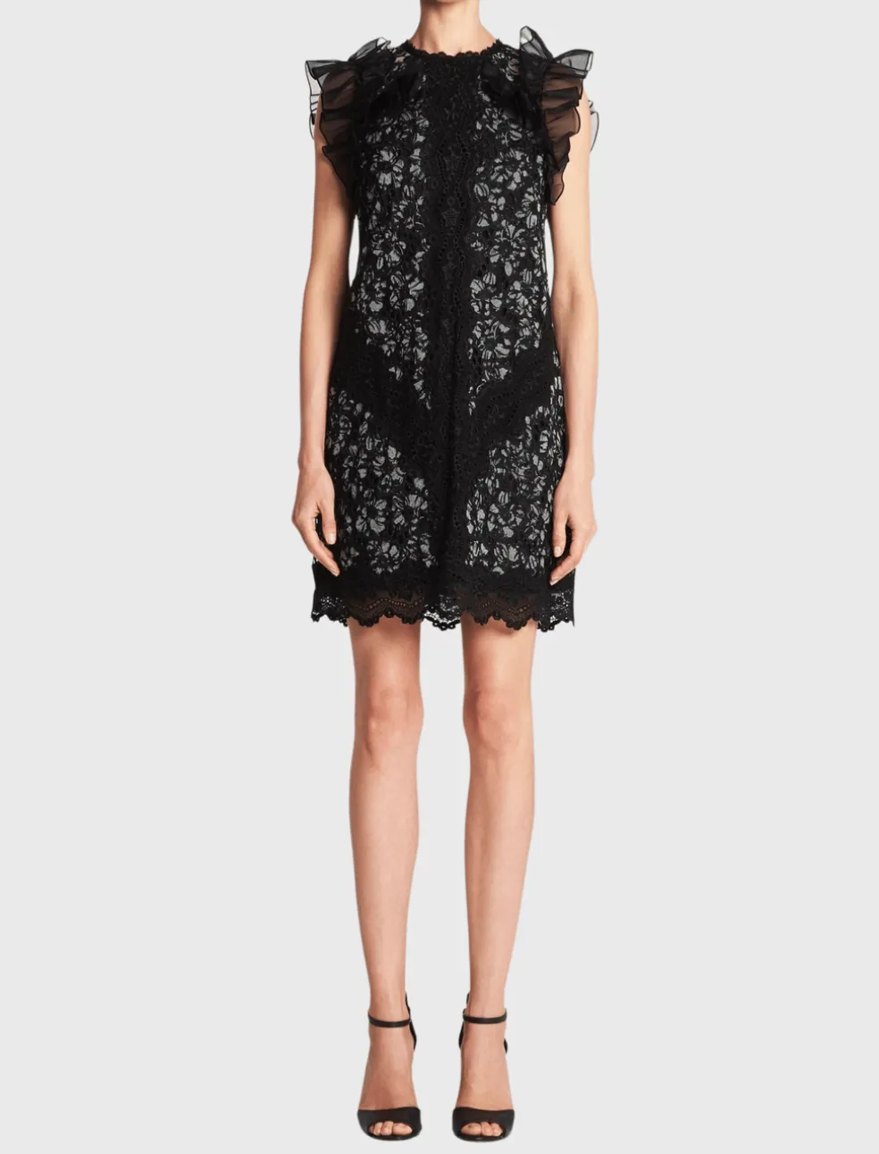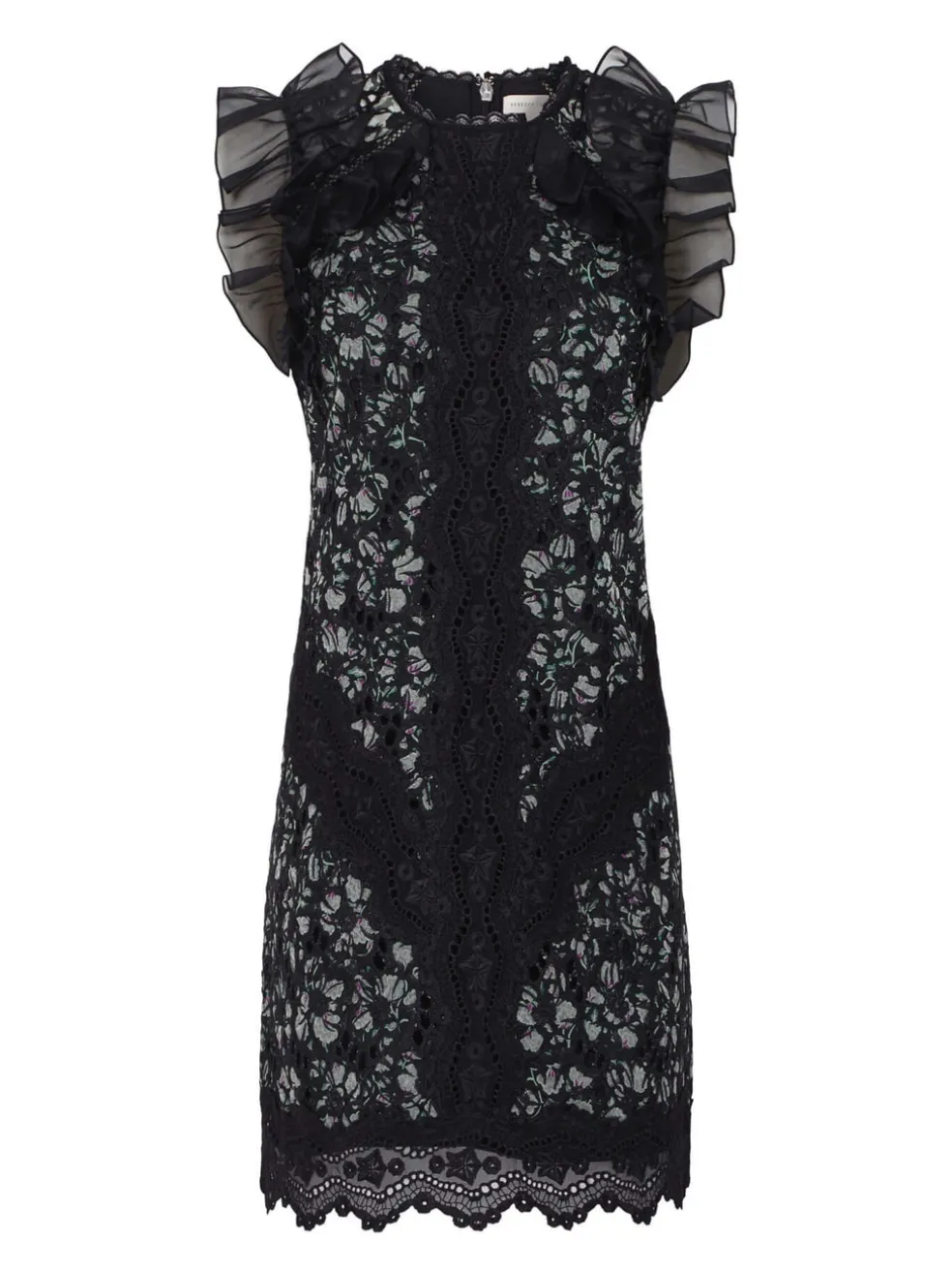 For the perfect date night dress that is both romantic and feminine look no further than the Rebecca Taylor Sleeveless Mini Floral Embroidery Dress. Constructed from a floral printed silk that has been combined with a stunning black embroidery this mini dress features sculptural chiffon ruffles, centre back zip, a round neckline and embroidered trims designed to have the look and feel of lace.