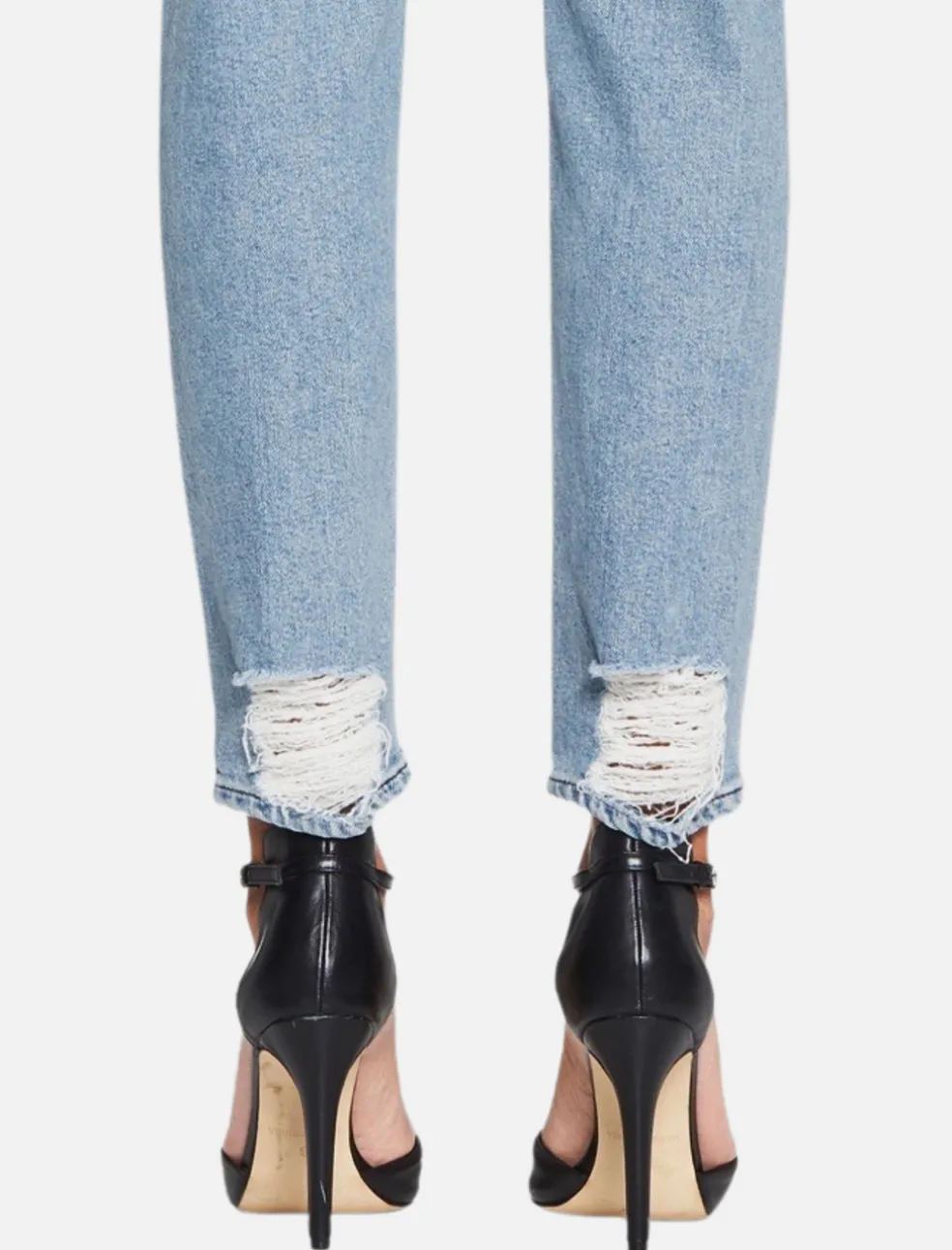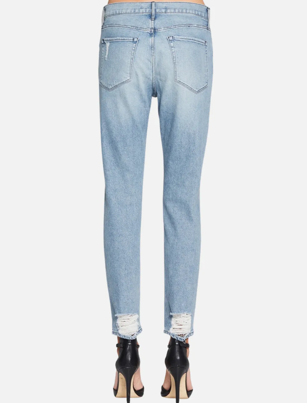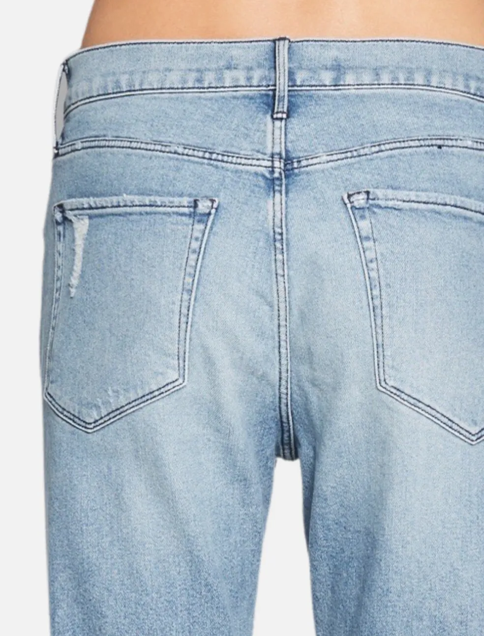 The Slim Boy Toy Jean in Ellis by 3×1 is an easy going high rise slim leg jean featuring a zip fly, and relaxed crotch. Constructed from a washed light blue denim with all over distressing, these jeans are the perfect match for your favourite relaxed white tee and black slides.