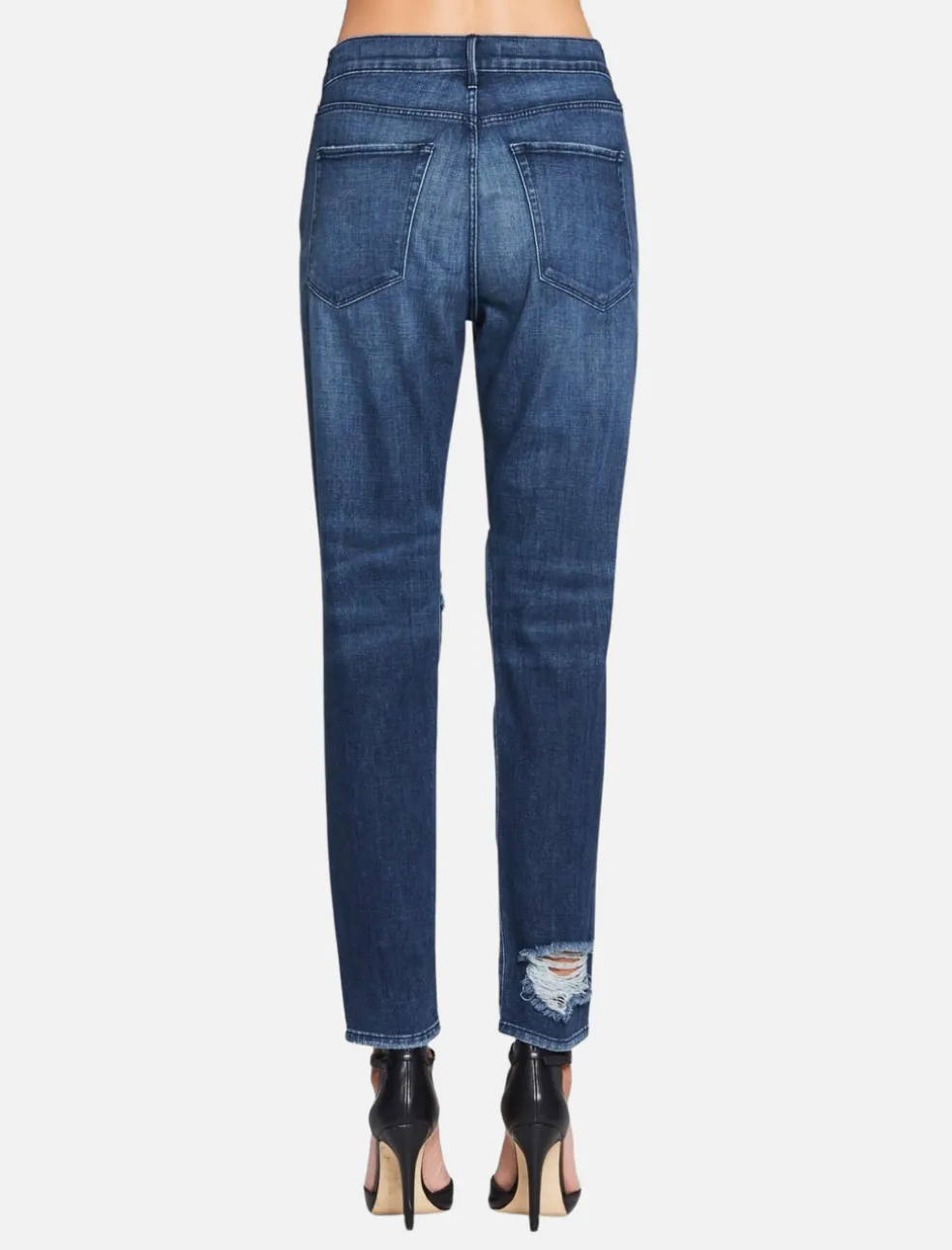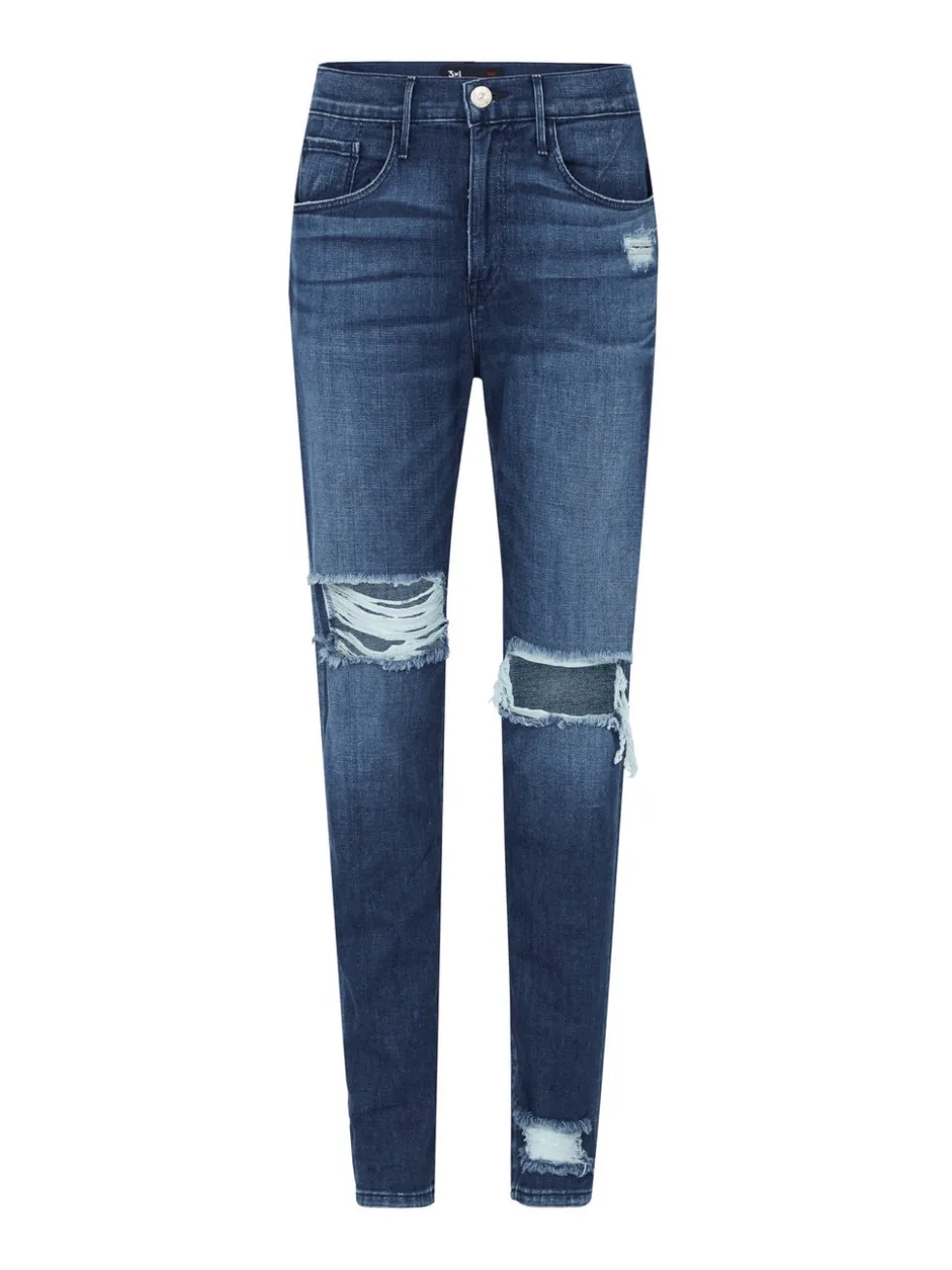 The 3×1 Slim Boy Toy Jean in Chet are a high rise jean with relaxed crotch, thigh and a slim straight leg. Constructed in a super soft blue denim these jeans feature large distressed holes at the knee and other general distressing throughout. Team with your favourite white tee for easy off duty style.