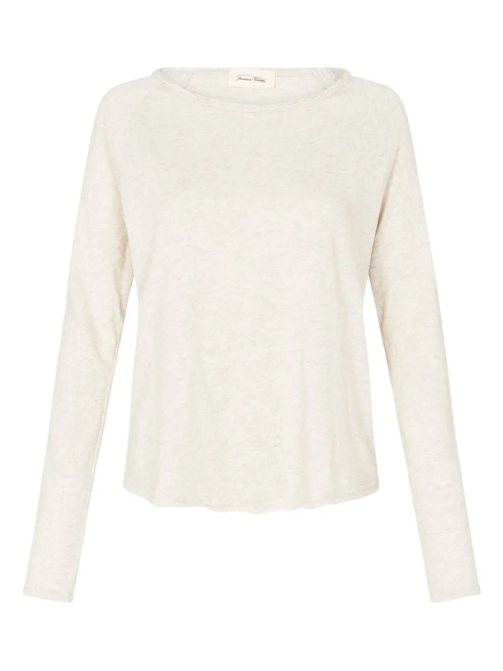 The Sonoma Top by American Vintage is the perfect piece to layer with in the cool weather. Constructed from a sturdy knitted cotton, this long sleeve piece features raglan sleeves and raw double layered trimming on the hemline and neckline. Here in the faded colour Arctic Melange.