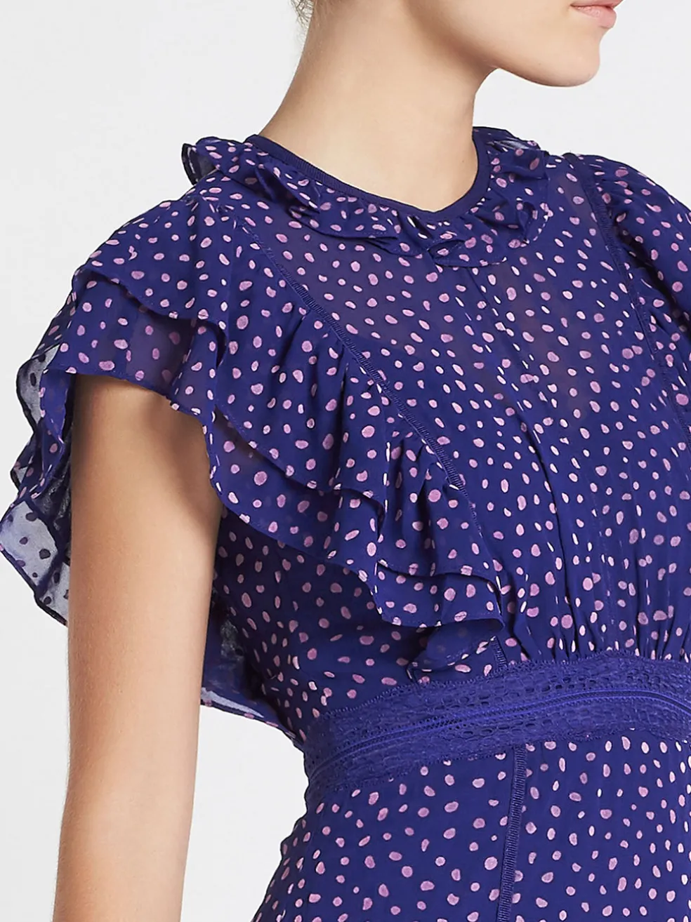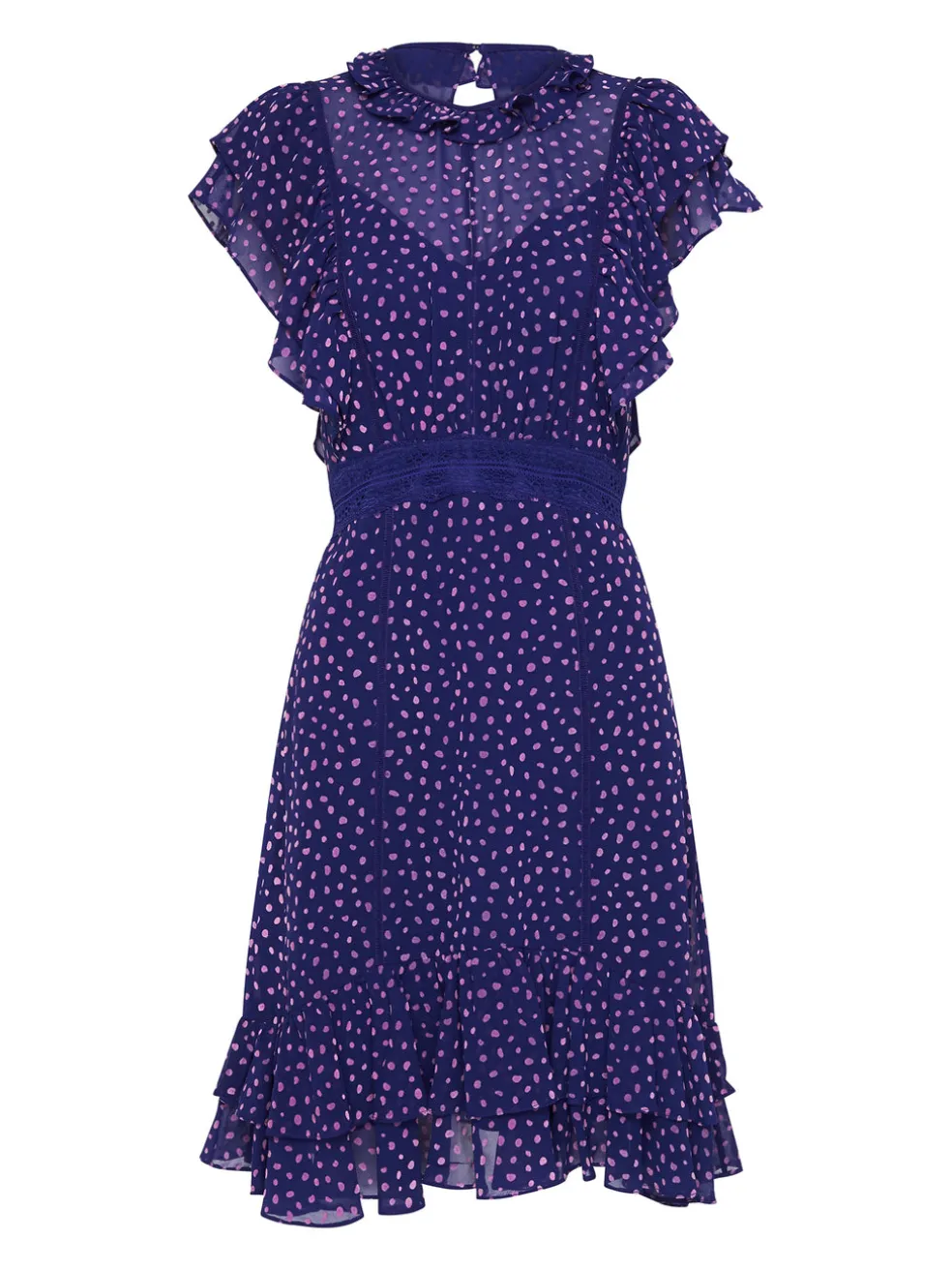 On point, on fleek, Spot On! The Spot On Dress from Three Floor is a fit and flare spectacular. Pairing a playful peplum with a high-neckline, the Spot On Dress also features frill detailing on the sleeves and a waistband with lace accent. This vibrant violet dress is sure to be popular!
