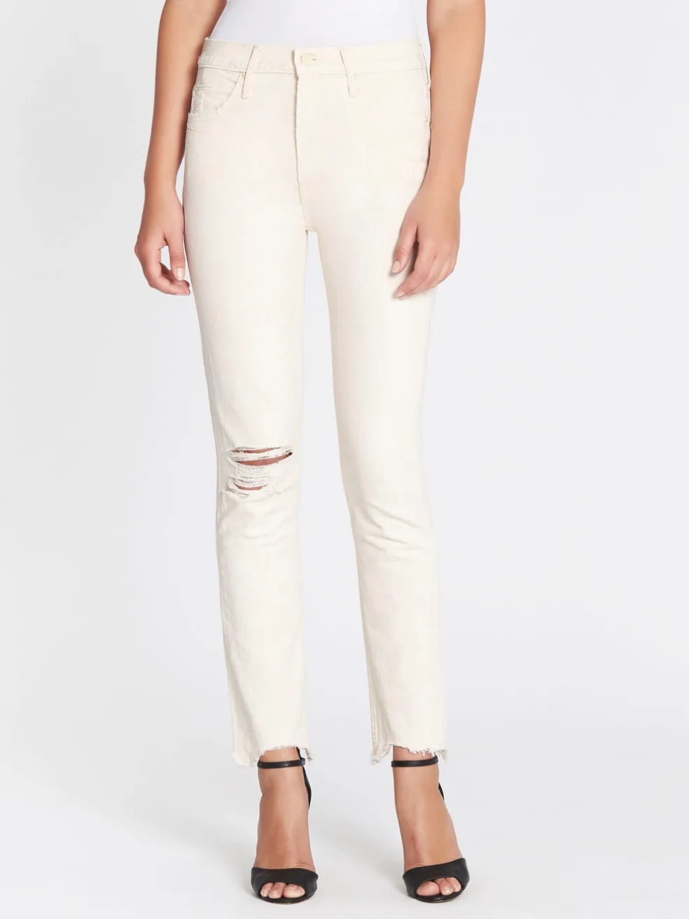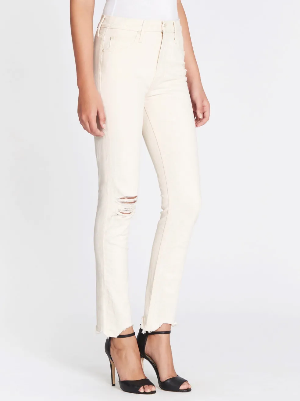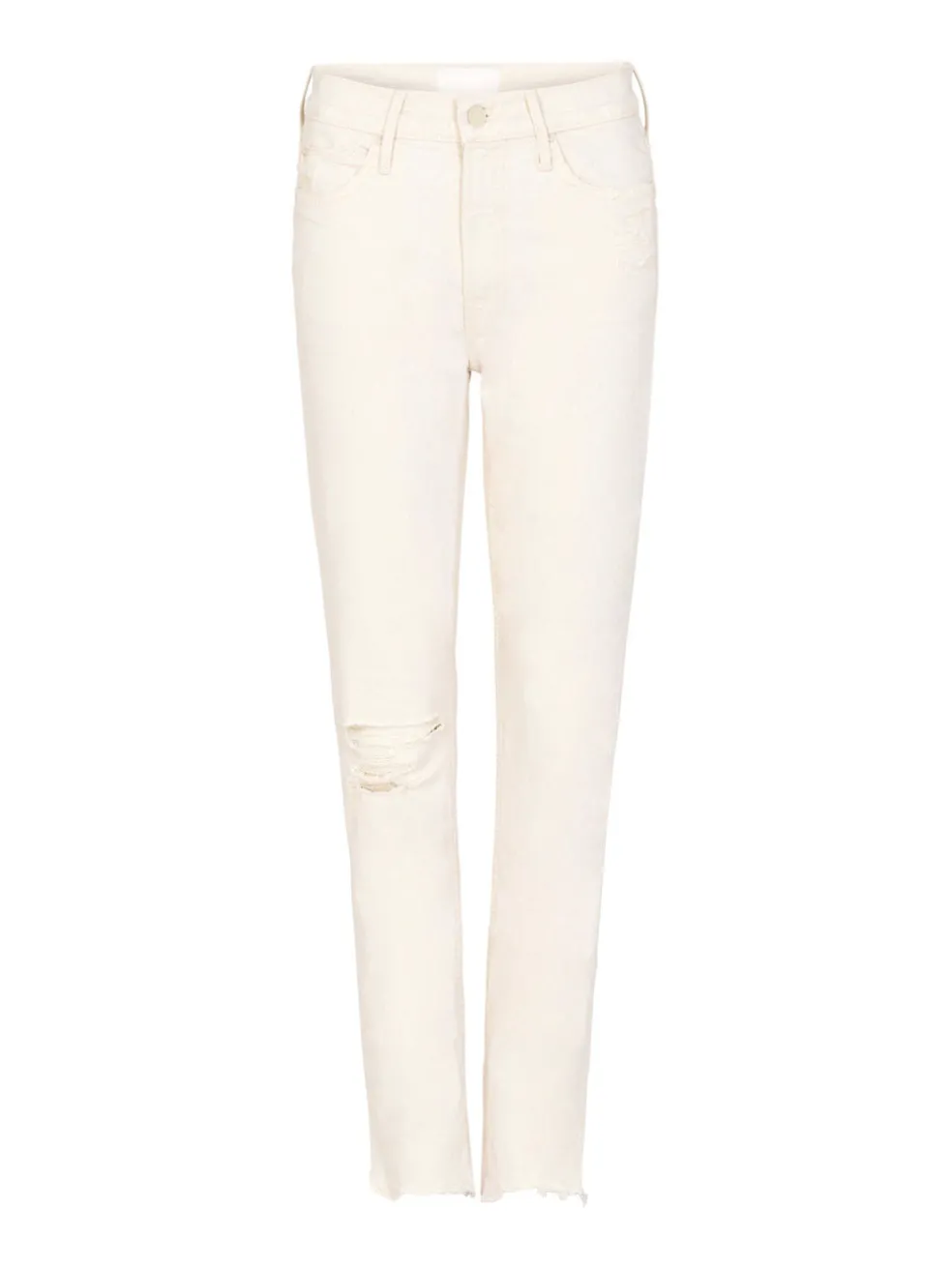 The classic white jean has been distressed and chewed up by Mother to create the perfect off-duty must have. Constructed from a cotton blend fabric these mid-rise, straight leg jeans feature a zip fly, single button closure, classic side and back pockets, ripped details and a chewed up hem for a cool girl crop finish.