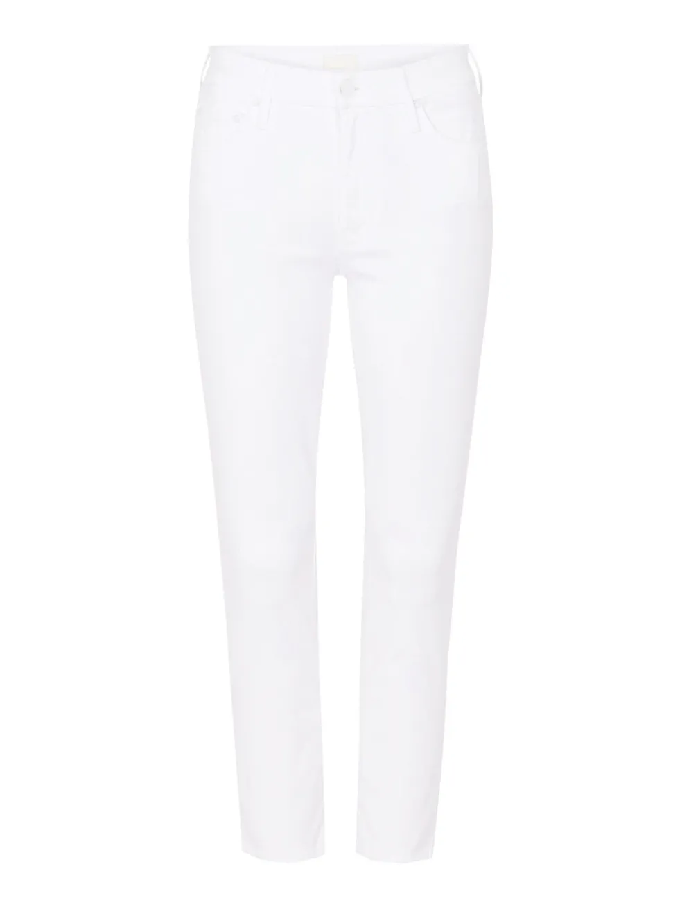 The Mother Denim Looker Crop Jean in Glass Slipper are the perfect figure hugging white skinny leg jeans. Constructed from a stretch cotton these mid-rise jeans feature front and back pockets, white hardware and a cropped finish. The feather-light cotton blend offers superior comfort and stretch, so you can move freely throughout your day in these stylish jeans.