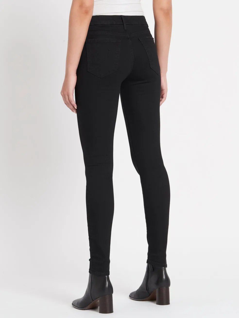 The Looker Jean by MOTHER are a skinny fitting style that is here Not Guilty a premium black denim. These super stretchy jeans have a mid rise of 8.5 inches and are detailed with matte black hardware.