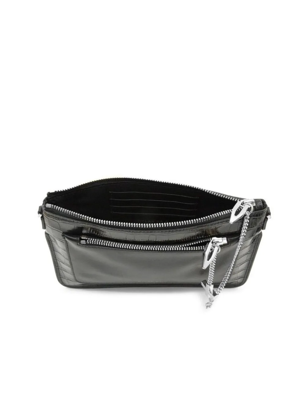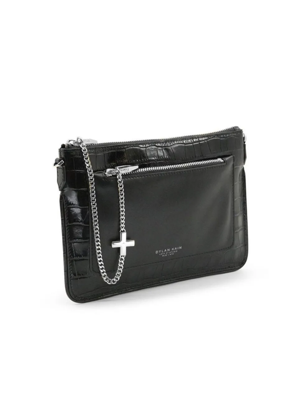 Looking for the perfect day to night hand bag? Look no further than the Dylan Kain Margot Croc Bag in Silver / Black. Constructed from a glassy croc embossed leather with a matte leather pouch this shoulder bag can be worn across the body during the day and made into a clutch at night. Finished with Dylan Kain branded silver hardware this piece is an absolutely must have.