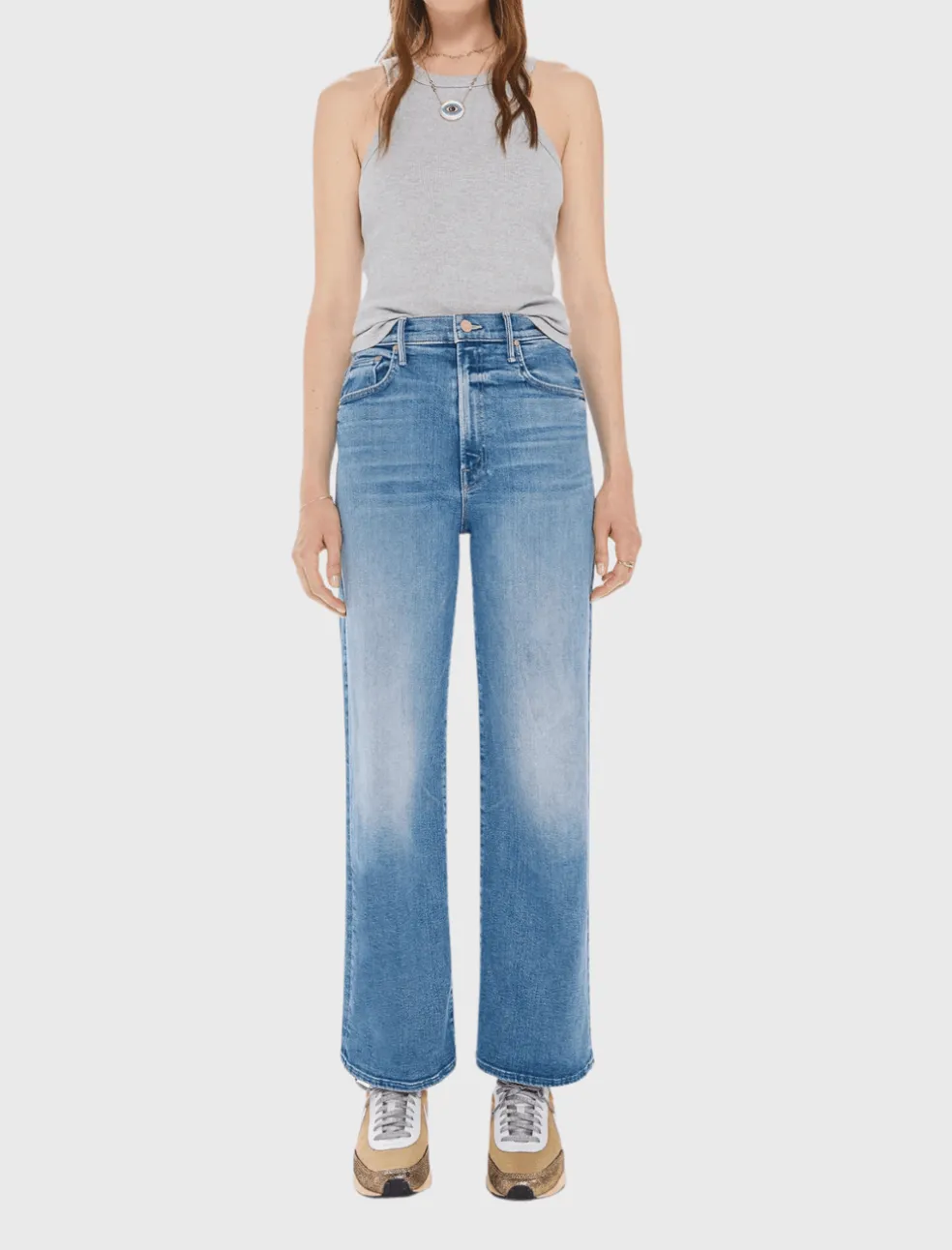 Get the Perfect Blend of Style and Comfort with The Maven Ankle Jeans in Wash Je T’aime by Mother Denim. If you’re looking for a pair of jeans that offer both style and comfort – we’ve found them here. With their super high-waisted design, loose fit, wide leg, and ankle-length inseam, these jeans are the perfect addition to any fashion-forward wardrobe.