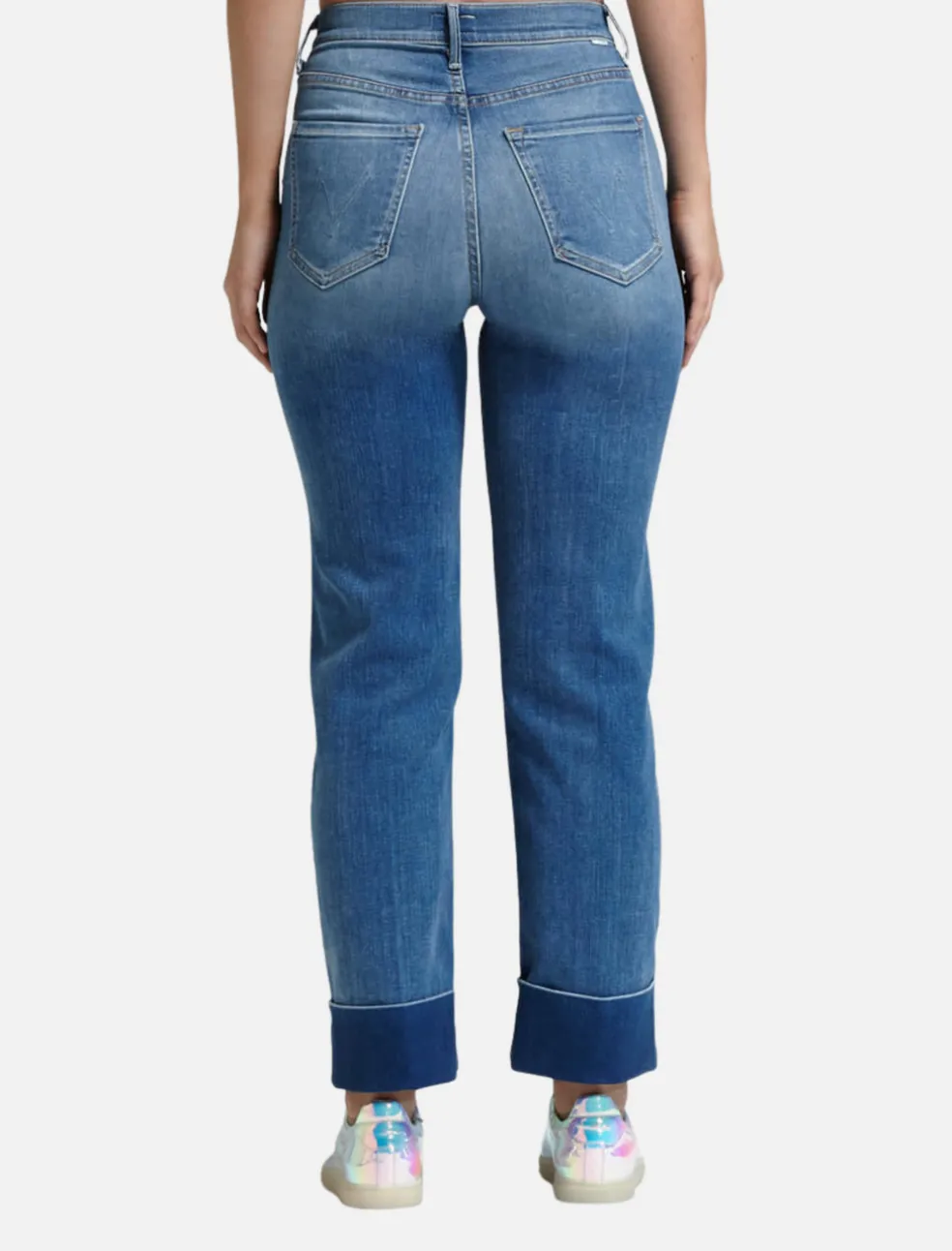 Stay ahead of the fashion curve with the Mother Denim Maverick Cuff Jeans. These on-trend jeans feature a fitted high rise seat paired with a slouchy, loose leg and dark-washed, fixed folded cuff detail. The typical 5-pocket styling, combined with fading and whiskering across the thigh, make these jeans a stylish addition to your wardrobe. The button closure and zip fly add the finishing touches to these must-have women’s designer jeans. Shop now for the latest in fashion and add the Mother Denim Maverick Cuff Jean to your collection today.