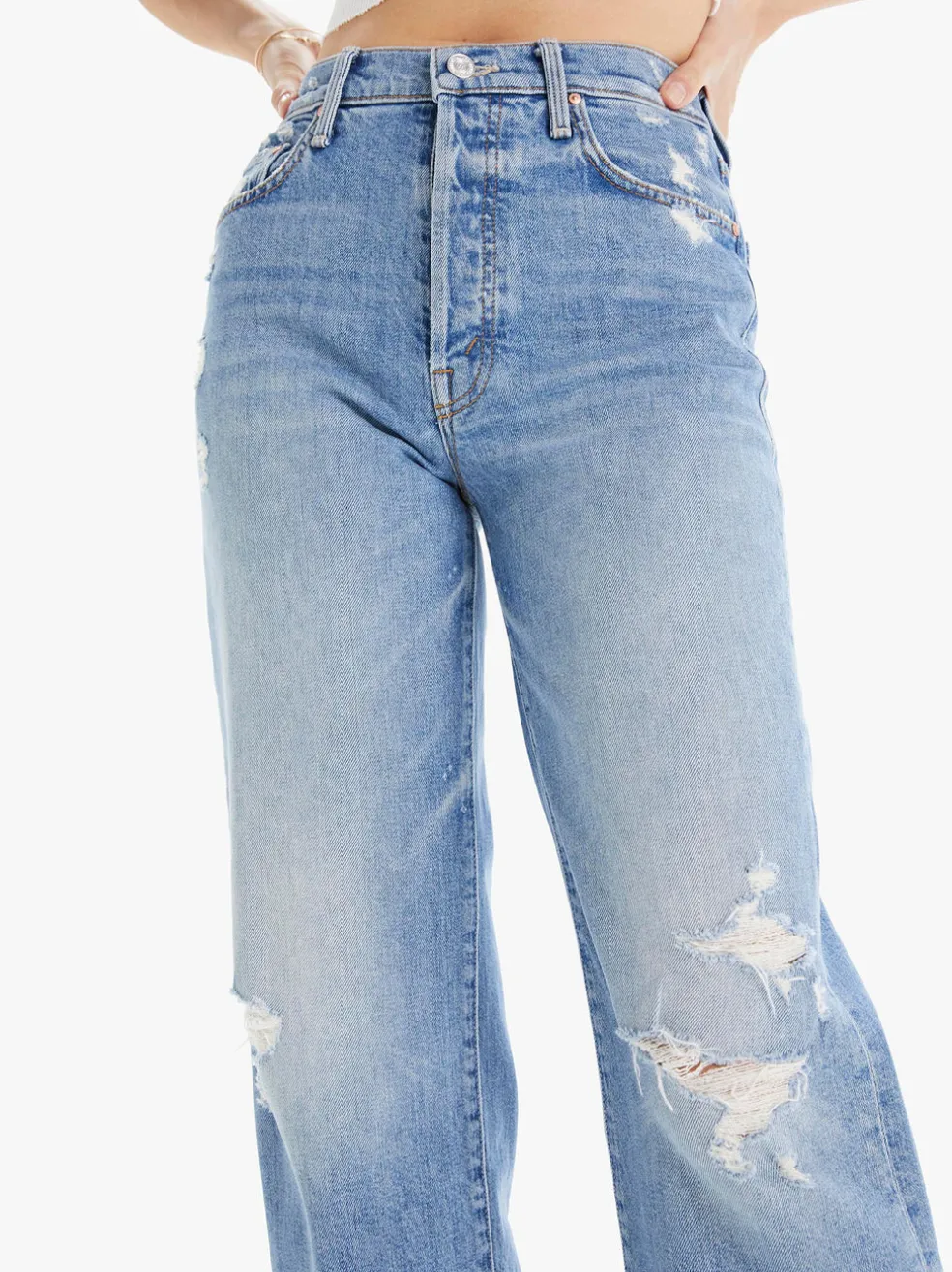 Gen Z have ben heard loud and clear. High rise and stright leg is the denim of the century and Mother has srved up the perfect pair with the Rambler Ankle Jan in Holy Melancholy. These super high-waisted jeans with a straight leg feature a button fly and an ankle-length inseam. Cut from SUPERIOR semi-rigid denim with subtle whiskering and fading, ripped knees and distressed details, Holy Melancholy is a mid-blue wash.