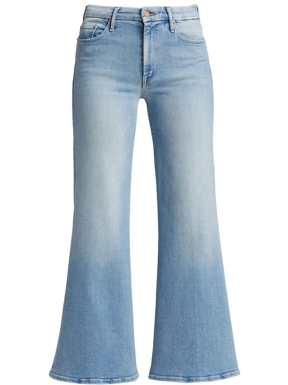 Strap on your roller skates and flash your peace sign. These 70’s inspired Roller Jeans in California Cruiser from Mother Denim are the perfect wide-leg jeans with a high rise. Cut from stretch denim, the Roller Jean in California Cruiser is a light blue wash with fading and whiskering. Pairs well with sun-streaked hair, convertibles, and endless highway.